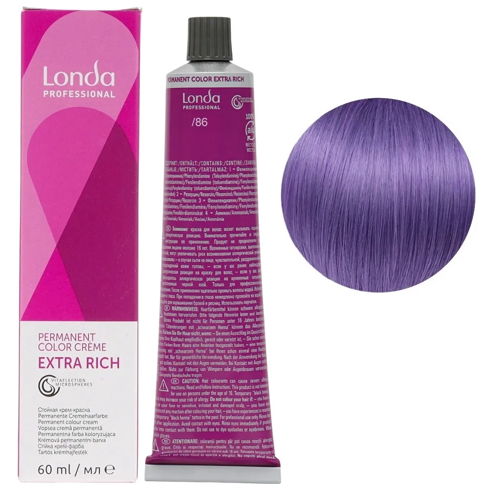 Стійка крем-фарба з мікросферами Vitaflection, які відбивають світло, для стійкого, насиченого життєвою енергією кольору і виняткового блиску волосся. Забезпечує тривалий результат – завдяки спеціальній технології фарба глибоко проникає у структуру волосся, забезпечує інтенсивний колір до 8 тижнів. Має широку палітру понад 100 відтінків для будь-якого типу та кольору волосся. Особливості продукту: /86 пастельний перлинно-фіолетовий мікстон Стійка фарба для волосся, 60 мл Permanent Color Londa Professional Фарба має престижну систему ароматів з високоякісним маскуванням аміаку, що робить фарбування більш приємним досвідом для вашого клієнта. Застосування: /86 пастельний перлинно-фіолетовий мікстон Стійка фарба для волосся, 60 мл Permanent Color Londa Professional Змішати фарбу Permanent Color з окислювачем Permanent Hair Colour Developer Londacolor 3%, 6%, 9% або 12%. Пропорції змішування: Час витримки залежить від бажаного результату. Важливо! Продукт для професійного застосування. Уважно ознайомтесь з інструкцією.Стійка фарба для волосся Permanent Color Londa Professional