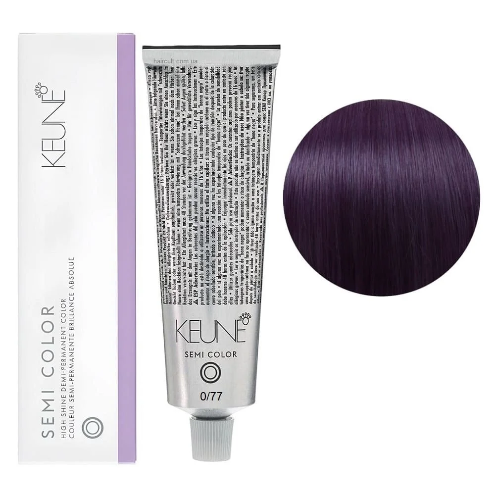 Keune Semi Color - це інноваційна безаміачна крем-фарба для волосся, створена на основі технології Silsoft, що забезпечує стійкий результат без шкоди для структури волосся. Засіб ідеально підходить для тонування, освіження кольору та фарбування до 70% сивини. Формула нового покоління містить активні компоненти, які м’яко відновлюють природний відтінок, роблять волосся гладким, м’яким і еластичним. Завдяки нейтральному pH та відсутності аміаку, фарба підходить навіть для чутливої шкіри голови та волосся після хімічних процедур. Особливості продукту: 0/77 Фіолетовий мікс Фарба для тонування волосся без аміаку, 60 мл Demi-Permanent Color SЕМІ COLOR KEUNE Застосування: 0/77 Фіолетовий мікс Фарба для тонування волосся без аміаку, 60 мл Demi-Permanent Color SЕМІ COLOR KEUNE Фарбу Keune Semi Color слід змішати з Activator Semi Color (2.25%) або Activator Intense Semi Color (3%) у співвідношенні 1:2. Час витримки 20 хвилин. Продукт для професійного використання. Уважно ознайомтесь з офіційною інструкцією.Фарба для тонування волосся без аміаку Demi-Permanent Color SЕМІ COLOR KEUNE