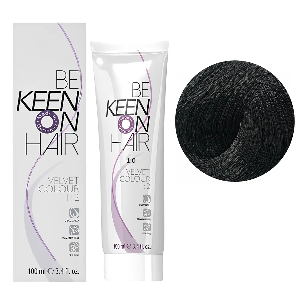 Перманентна крем-фарба VELVET COLOUR призначена для тонування та для делікатного фарбування. Забезпечує 90% зафарбовування сивини і має чудову стійкість. Стійкість до 40 разів миття. Особливості продукту: 1/0 чорний Перманентна крем-фарба без аміаку, 100 мл VELVET COLOUR KEEN Активні компоненти: 1/0 чорний Перманентна крем-фарба без аміаку, 100 мл VELVET COLOUR KEEN Застосування: 1/0 чорний Перманентна крем-фарба без аміаку, 100 мл VELVET COLOUR KEEN Час витримки: 20-30 хвилин. Продукт призначений для професійного використання. Уважно ознайомтесь з інструкцією.Перманентна крем-фарба без аміаку VELVET COLOUR KEEN