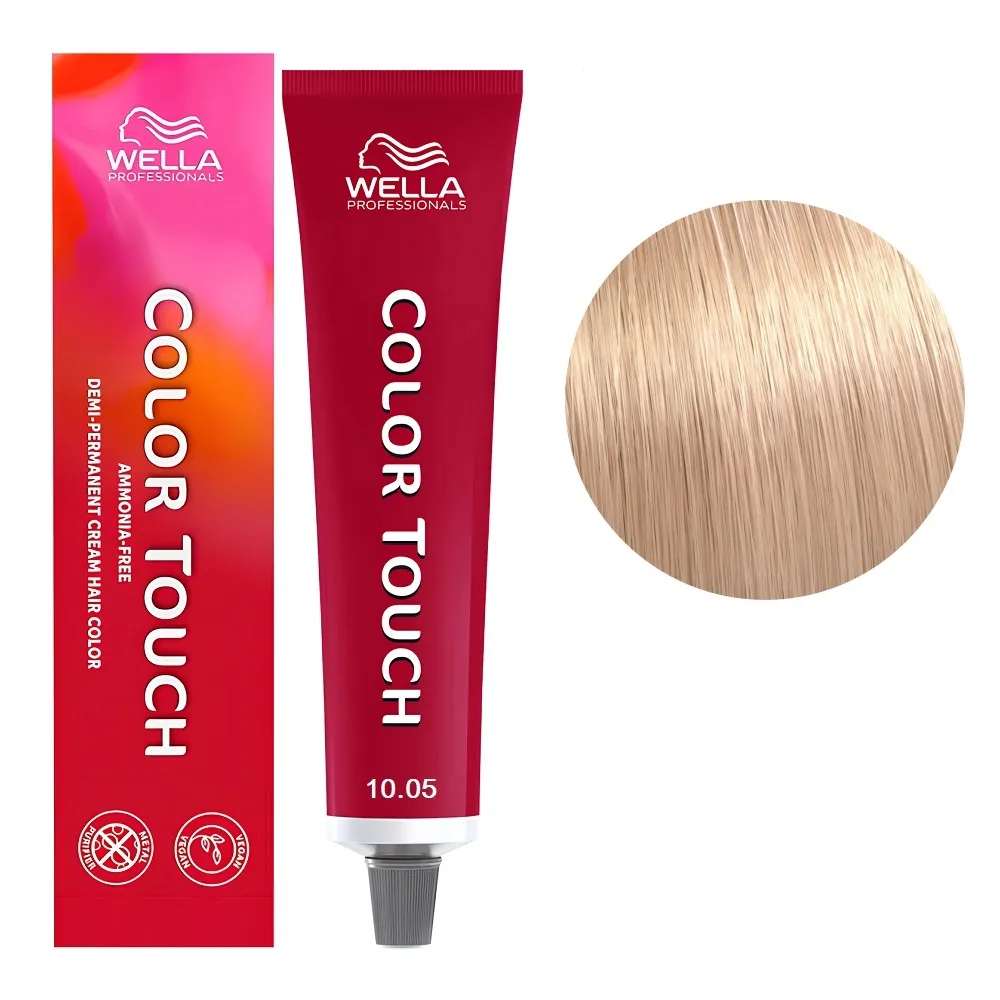 Фарба без аміаку Color Touch - це новий рівень фарбування: багатовимірне тонування волосся. Веганський склад із вмістом до 85% інгредієнтів натурального походження, без аміаку (за винятком Color Touch Plus, що призначена для сивого волосся), робить фарбування максимально делікатним. Особливості продукту: 10/05 найсвітліший блондин натурально-махагоновий Фарба для тонування волосся без аміаку (Оновлена формула), 60 мл COLOR TOUCH Wella Professionals Усі відтінки базової гами Color Touch можна змішувати між собою. Застосування: 10/05 найсвітліший блондин натурально-махагоновий Фарба для тонування волосся без аміаку (Оновлена формула), 60 мл COLOR TOUCH Wella Professionals Час витримки: з теплом 15 хвилин, без тепла 20-25 хвилин. Продукт призначений для професійного використання. Уважно ознайомтесь з інструкцією.Тонувальна фарба без аміаку Color Touch Wella Professionals з оновленою веганською формулою