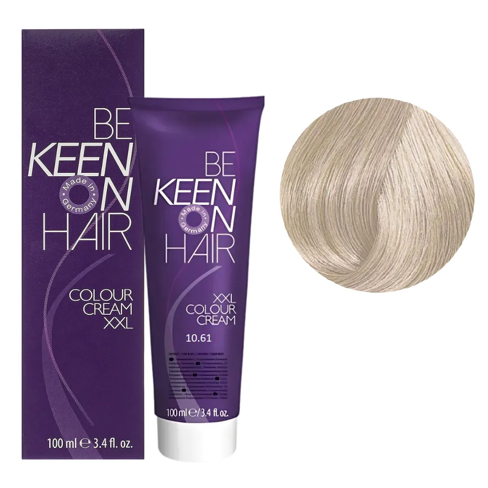 Краще співвідношення ціни та якості! Colour Cream XXL KEEN фарба німецького виробника завоювала визнання професійних майстрів і покупців по всій Європі. Палітра налічує понад 116 відтінків для креативної комбінації кольорів. Всі тони поєднуються між собою, їх можна змішувати, створюючи свій неповторний стиль. Кремоподібна текстура фарби легко наноситься, не тече і забезпечує рівномірний результат. Особливості продукту: 10/61 ультрасвітлий блондин фіолетово-попелястий Стійка крем-фарба для волосся, 100 мл Colour Cream XXL KEEN Активні компоненти: гідролізовані молочні протеїни піклуються про волосся під час фарбування зберігають необхідну вологість, надає волоссю блиску та пружності. Застосування: 10/61 ультрасвітлий блондин фіолетово-попелястий Стійка крем-фарба для волосся, 100 мл Colour Cream XXL KEEN Змішати в неметалевому посуді крем-фарбу Colour Cream XXL KEEN із крем-окислювачем. Фарбуючу суміш наносити на сухе чисте волосся. Вибір концентрації крем-окислювача 1,9%, 3%, 6%, 9% або 12% залежить від бажаного рівня освітлення. При використанні додаткового джерела тепла час витримки зменшується вдвічі. Пропорції змішування: 10/61 ультрасвітлий блондин фіолетово-попелястий Стійка крем-фарба для волосся, 100 мл Colour Cream XXL KEEN Час витримки: 35 хвилин. Продукт призначений для професійного використання. Уважно ознайомтесь з інструкцією.Стійка крем-фарба для волосся Colour Cream XXL KEEN