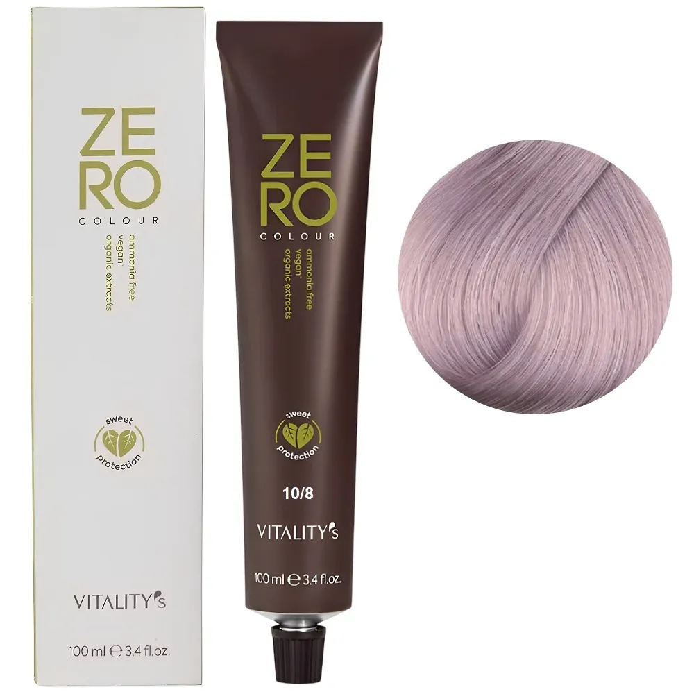 Zero Colour – це веганська фарба з високим натуральним індексом, зі зниженим ризиком подразнення та алергії. Завдяки антиоксидантним та пом`якшувальним властивостям, вона допомагає захистити колір та робить волосся м`яким і шовковистим. Формула без аміаку делікатно відновлює волосся для багатогранного, насиченого та сяючого кольору. Здатна задовольнити бажання кольору всіх жінок, навіть тих, хто має проблеми з чутливістю шкіри. Результат зберігається до 6 тижнів. Зменшуються подразнення та сухість шкіри голови, покращується загальний стан волосся після фарбування. Особливості продукту: 10/8 платиновий блондин фіолетовий Крем-фарба для волосся без аміаку, 100 мл ZERO VEGAN Vitality`s Застосування: 10/8 платиновий блондин фіолетовий Крем-фарба для волосся без аміаку, 100 мл ZERO VEGAN Vitality`s Важливо! Продукт для професійного застосування. Уважно ознайомтесь з інструкцією..Крем-фарба для волосся без аміаку ZERO VEGAN Vitality`s