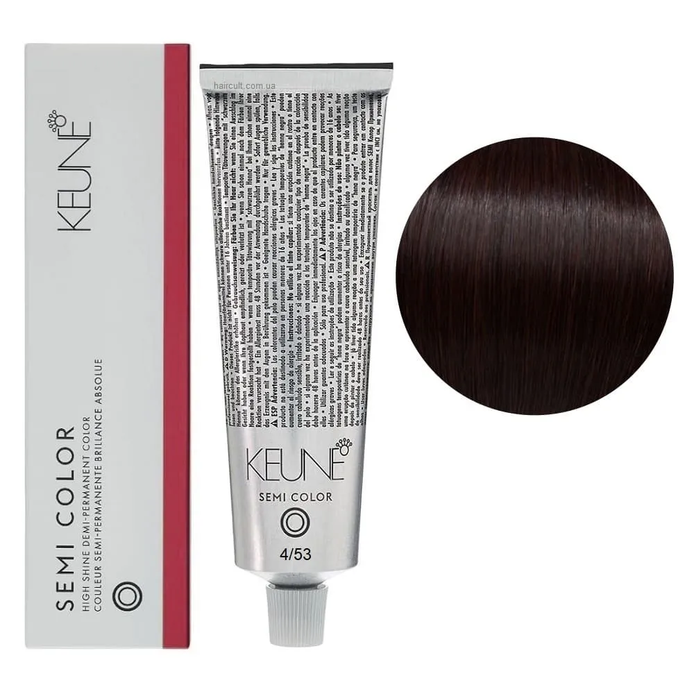 Keune Semi Color - це інноваційна безаміачна крем-фарба для волосся, створена на основі технології Silsoft, що забезпечує стійкий результат без шкоди для структури волосся. Засіб ідеально підходить для тонування, освіження кольору та фарбування до 70% сивини. Формула нового покоління містить активні компоненти, які м’яко відновлюють природний відтінок, роблять волосся гладким, м’яким і еластичним. Завдяки нейтральному pH та відсутності аміаку, фарба підходить навіть для чутливої шкіри голови та волосся після хімічних процедур. Особливості продукту: 4/53 Середньо-коричневий махагоново-золотистий Фарба для тонування волосся без аміаку, 60 мл Demi-Permanent Color SЕМІ COLOR KEUNE Застосування: 4/53 Середньо-коричневий махагоново-золотистий Фарба для тонування волосся без аміаку, 60 мл Demi-Permanent Color SЕМІ COLOR KEUNE Фарбу Keune Semi Color слід змішати з Activator Semi Color (2.25%) або Activator Intense Semi Color (3%) у співвідношенні 1:2. Час витримки 20 хвилин. Продукт для професійного використання. Уважно ознайомтесь з офіційною інструкцією.Фарба для тонування волосся без аміаку Demi-Permanent Color SЕМІ COLOR KEUNE