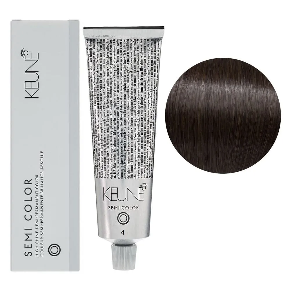 Keune Semi Color - це інноваційна безаміачна крем-фарба для волосся, створена на основі технології Silsoft, що забезпечує стійкий результат без шкоди для структури волосся. Засіб ідеально підходить для тонування, освіження кольору та фарбування до 70% сивини. Формула нового покоління містить активні компоненти, які м’яко відновлюють природний відтінок, роблять волосся гладким, м’яким і еластичним. Завдяки нейтральному pH та відсутності аміаку, фарба підходить навіть для чутливої шкіри голови та волосся після хімічних процедур. Особливості продукту: 4 Середньо-коричневий натуральний Фарба для тонування волосся без аміаку, 60 мл Demi-Permanent Color SЕМІ COLOR KEUNE Застосування: 4 Середньо-коричневий натуральний Фарба для тонування волосся без аміаку, 60 мл Demi-Permanent Color SЕМІ COLOR KEUNE Фарбу Keune Semi Color слід змішати з Activator Semi Color (2.25%) або Activator Intense Semi Color (3%) у співвідношенні 1:2. Час витримки 20 хвилин. Продукт для професійного використання. Уважно ознайомтесь з офіційною інструкцією.Фарба для тонування волосся без аміаку Demi-Permanent Color SЕМІ COLOR KEUNE