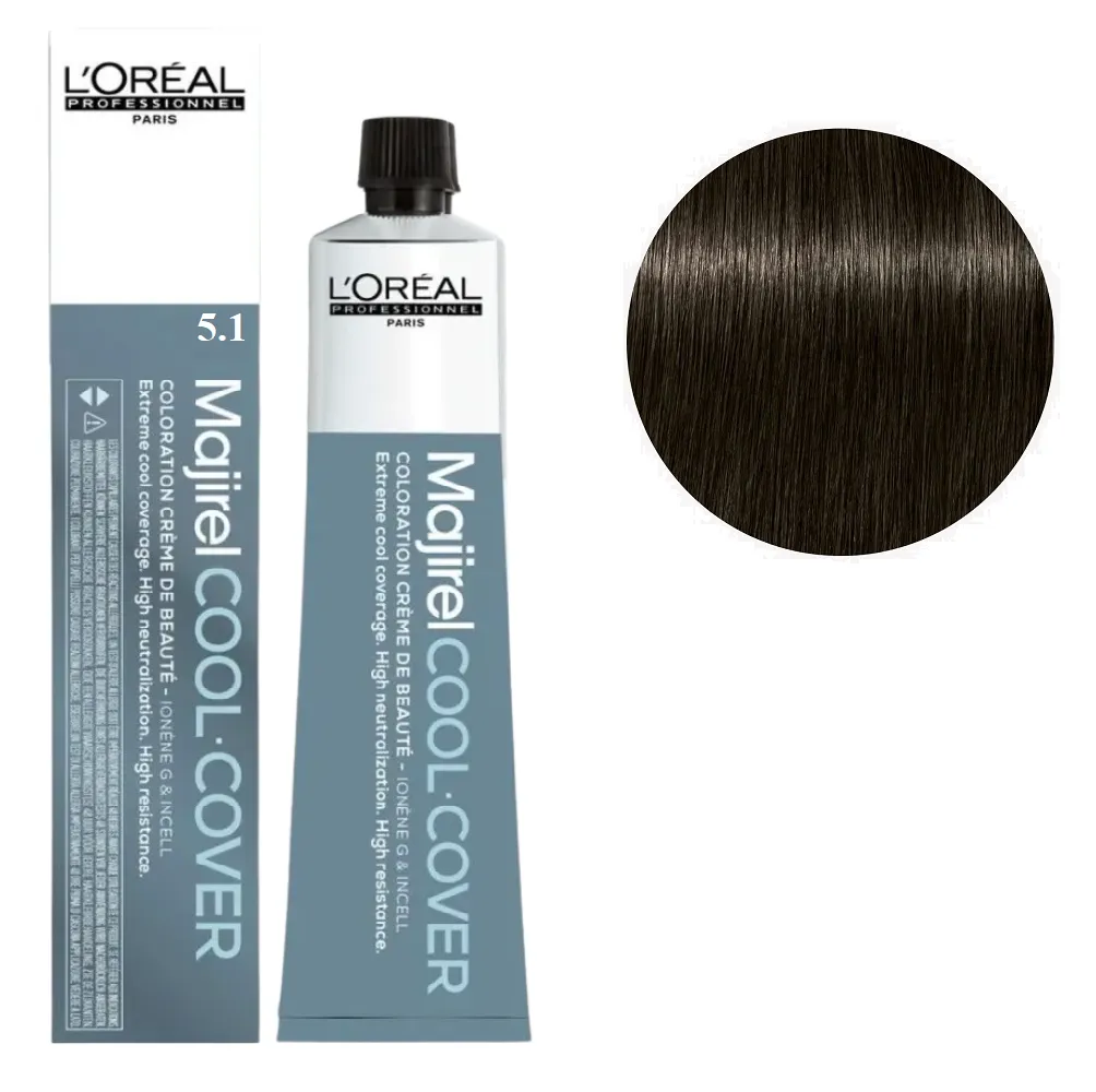 Majirel від L’Oreal Professionnel - це професійна стійка крем-фарба, створена для майстрів, які цінують точність, передбачуваність і розкішний результат фарбування. Формула розроблена з урахуванням останніх досягнень у сфері колористики, щоб забезпечити насичений колір, ідеальне покриття сивини та неперевершений блиск. Завдяки технології Ionene G™ та Incell™ волосся зберігає здорову структуру навіть після інтенсивного фарбування. Активні компоненти проникають у глибину волокна, зміцнюють кутикулу та підвищують стійкість кольору. Результат - шовковисті пасма з глибоким, багатовимірним відтінком. Особливості продукту: 5/1 Світло-коричевий попелястий Фарба для волосся стійка для сивини, 60 мл Majirel Cool Cover L`Oreal Professionnel (оновлений формат)) Застосування: 5/1 Світло-коричевий попелястий Фарба для волосся стійка для сивини, 60 мл Majirel Cool Cover L`Oreal Professionnel (оновлений формат) Пропорції змішування з окислювачем: Час витримки залежить від обраної фарби та бажаного результату фарбування. Фарба Majirel від L’Oreal Professionnel призначена для професійного використання! Уважно ознайомтесь з інструкцією.Фарба для волосся стійка Majirel L`Oreal Professionnel (оновлений формат - 60 мл)