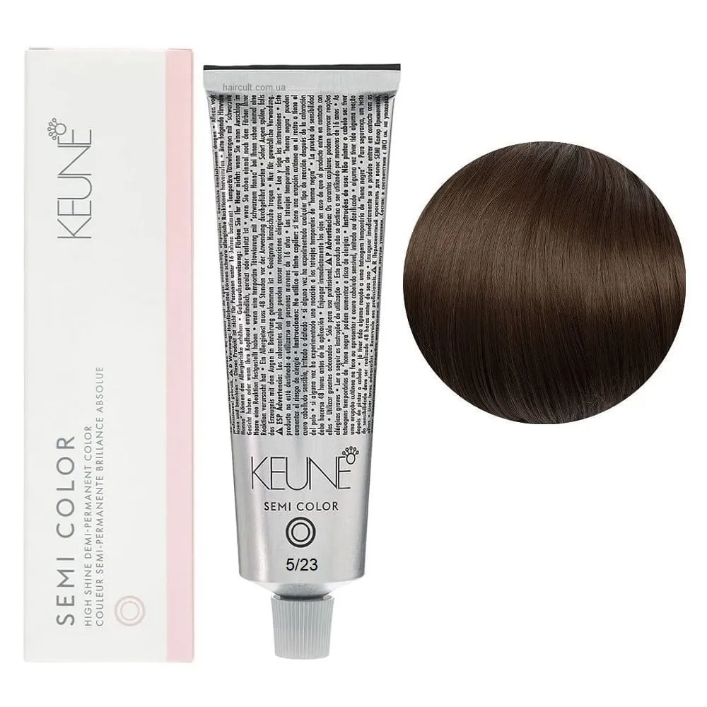 Keune Semi Color - це інноваційна безаміачна крем-фарба для волосся, створена на основі технології Silsoft, що забезпечує стійкий результат без шкоди для структури волосся. Засіб ідеально підходить для тонування, освіження кольору та фарбування до 70% сивини. Формула нового покоління містить активні компоненти, які м’яко відновлюють природний відтінок, роблять волосся гладким, м’яким і еластичним. Завдяки нейтральному pH та відсутності аміаку, фарба підходить навіть для чутливої шкіри голови та волосся після хімічних процедур. Особливості продукту: 5/23 Світло-коричневий перламутрово-золостистий Фарба для тонування волосся без аміаку, 60 мл Demi-Permanent Color SЕМІ COLOR KEUNE Застосування: 5/23 Світло-коричневий перламутрово-золостистий Фарба для тонування волосся без аміаку, 60 мл Demi-Permanent Color SЕМІ COLOR KEUNE Фарбу Keune Semi Color слід змішати з Activator Semi Color (2.25%) або Activator Intense Semi Color (3%) у співвідношенні 1:2. Час витримки 20 хвилин. Продукт для професійного використання. Уважно ознайомтесь з офіційною інструкцією.Фарба для тонування волосся без аміаку Demi-Permanent Color SЕМІ COLOR KEUNE