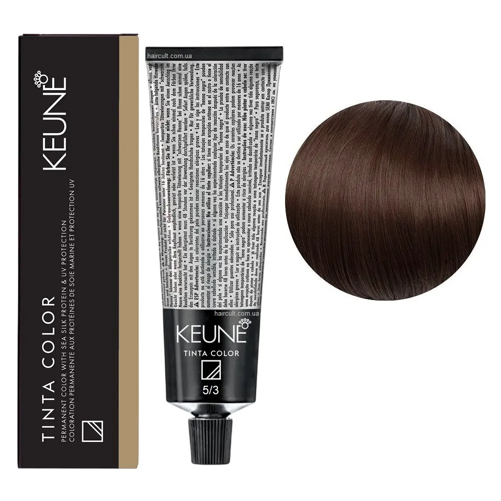 Tinta Color Keune - це преміальна перманентна крем-фарба, яка забезпечує 100% покриття сивини, інтенсивний колір та ефект догляду після кожного фарбування. Унікальна формула з протеїнами шовку глибоко кондиціонує волосся, зберігає його м’якість і блиск. Завдяки вмісту бджолиного воску, фарба не тече та рівномірно розподіляється по всій довжині. Фарба доступна в широкій палітрі - від природних тонів до виразних і насичених кольорів. Підходить для будь-якого типу волосся - як натурального, так і фарбованого. Спеціальні серії Tinta Color: Переваги фарби Keune Tinta Color: 5/3 Світло-коричневий золотистий Фарба перманентна для волосся, 60 мл Permanent Color TINTA COLOR KEUNE Застосування: 5/3 Світло-коричневий золотистий Фарба перманентна для волосся, 60 мл Permanent Color TINTA COLOR KEUNE Змішайте з окислювачем Cream Developer TINTA KEUNE у пропорції 1:1. Важливо! Продукт для професійного використання. Уважно ознайомтесь з офіційною інструкцією.Фарба перманентна для волосся Permanent Color Sea Silk Protein TINTA COLOR KEUNE