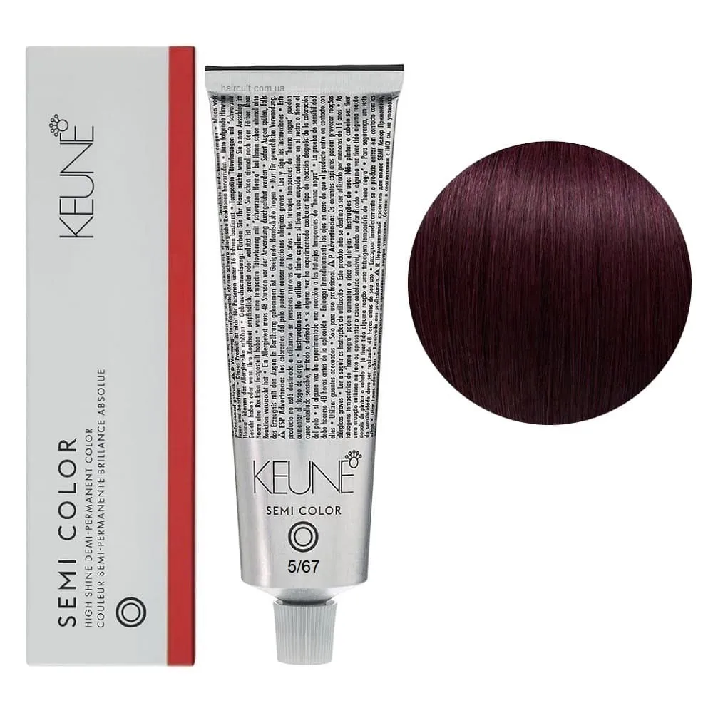 Keune Semi Color - це інноваційна безаміачна крем-фарба для волосся, створена на основі технології Silsoft, що забезпечує стійкий результат без шкоди для структури волосся. Засіб ідеально підходить для тонування, освіження кольору та фарбування до 70% сивини. Формула нового покоління містить активні компоненти, які м’яко відновлюють природний відтінок, роблять волосся гладким, м’яким і еластичним. Завдяки нейтральному pH та відсутності аміаку, фарба підходить навіть для чутливої шкіри голови та волосся після хімічних процедур. Особливості продукту: 5/67 Світло-коричневий червоно-фіолетовий Фарба для тонування волосся без аміаку, 60 мл Demi-Permanent Color SЕМІ COLOR KEUNE Застосування: 5/67 Світло-коричневий червоно-фіолетовий Фарба для тонування волосся без аміаку, 60 мл Demi-Permanent Color SЕМІ COLOR KEUNE Фарбу Keune Semi Color слід змішати з Activator Semi Color (2.25%) або Activator Intense Semi Color (3%) у співвідношенні 1:2. Час витримки 20 хвилин. Продукт для професійного використання. Уважно ознайомтесь з офіційною інструкцією.Фарба для тонування волосся без аміаку Demi-Permanent Color SЕМІ COLOR KEUNE