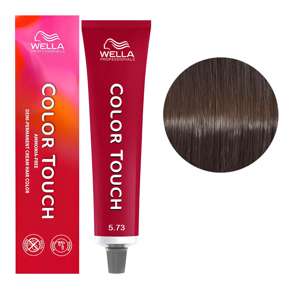 Фарба без аміаку Color Touch - це новий рівень фарбування: багатовимірне тонування волосся. Веганський склад із вмістом до 85% інгредієнтів натурального походження, без аміаку (за винятком Color Touch Plus, що призначена для сивого волосся), робить фарбування максимально делікатним. Особливості продукту: 5/73 світлий шатен коричнево-золотистий Фарба для тонування волосся без аміаку (Оновлена формула), 60 мл COLOR TOUCH Wella Professionals Усі відтінки базової гами Color Touch можна змішувати між собою. Застосування: 5/73 світлий шатен коричнево-золотистий Фарба для тонування волосся без аміаку (Оновлена формула), 60 мл COLOR TOUCH Wella Professionals Час витримки: з теплом 15 хвилин, без тепла 20-25 хвилин. Продукт призначений для професійного використання. Уважно ознайомтесь з інструкцією.Тонувальна фарба без аміаку Color Touch Wella Professionals з оновленою веганською формулою