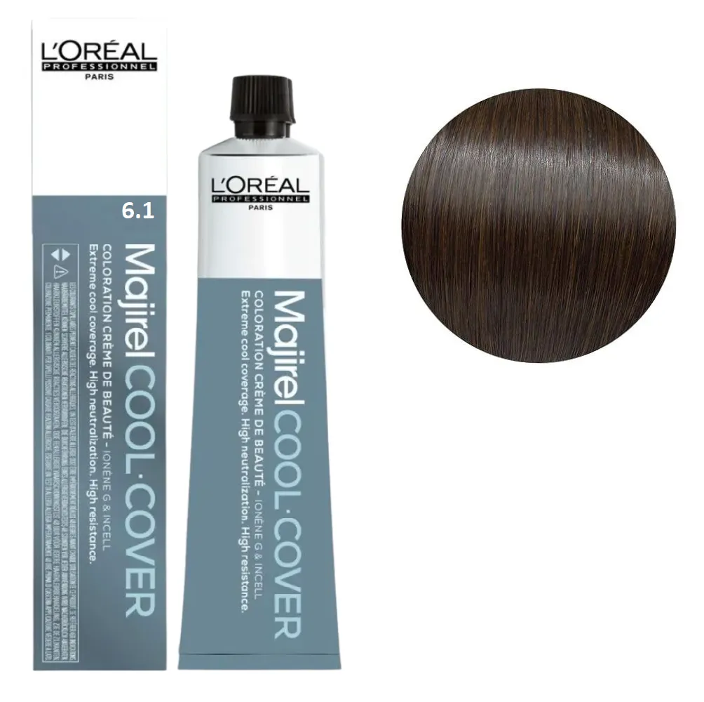 Majirel від L’Oreal Professionnel - це професійна стійка крем-фарба, створена для майстрів, які цінують точність, передбачуваність і розкішний результат фарбування. Формула розроблена з урахуванням останніх досягнень у сфері колористики, щоб забезпечити насичений колір, ідеальне покриття сивини та неперевершений блиск. Завдяки технології Ionene G™ та Incell™ волосся зберігає здорову структуру навіть після інтенсивного фарбування. Активні компоненти проникають у глибину волокна, зміцнюють кутикулу та підвищують стійкість кольору. Результат - шовковисті пасма з глибоким, багатовимірним відтінком. Особливості продукту: 6/1 Темний блондин попелястий Фарба для волосся стійка для сивини, 60 мл Majirel Cool Cover L`Oreal Professionnel (оновлений формат)) Застосування: 6/1 Темний блондин попелястий Фарба для волосся стійка для сивини, 60 мл Majirel Cool Cover L`Oreal Professionnel (оновлений формат) Пропорції змішування з окислювачем: Час витримки залежить від обраної фарби та бажаного результату фарбування. Фарба Majirel від L’Oreal Professionnel призначена для професійного використання! Уважно ознайомтесь з інструкцією.Фарба для волосся стійка Majirel L`Oreal Professionnel (оновлений формат - 60 мл)