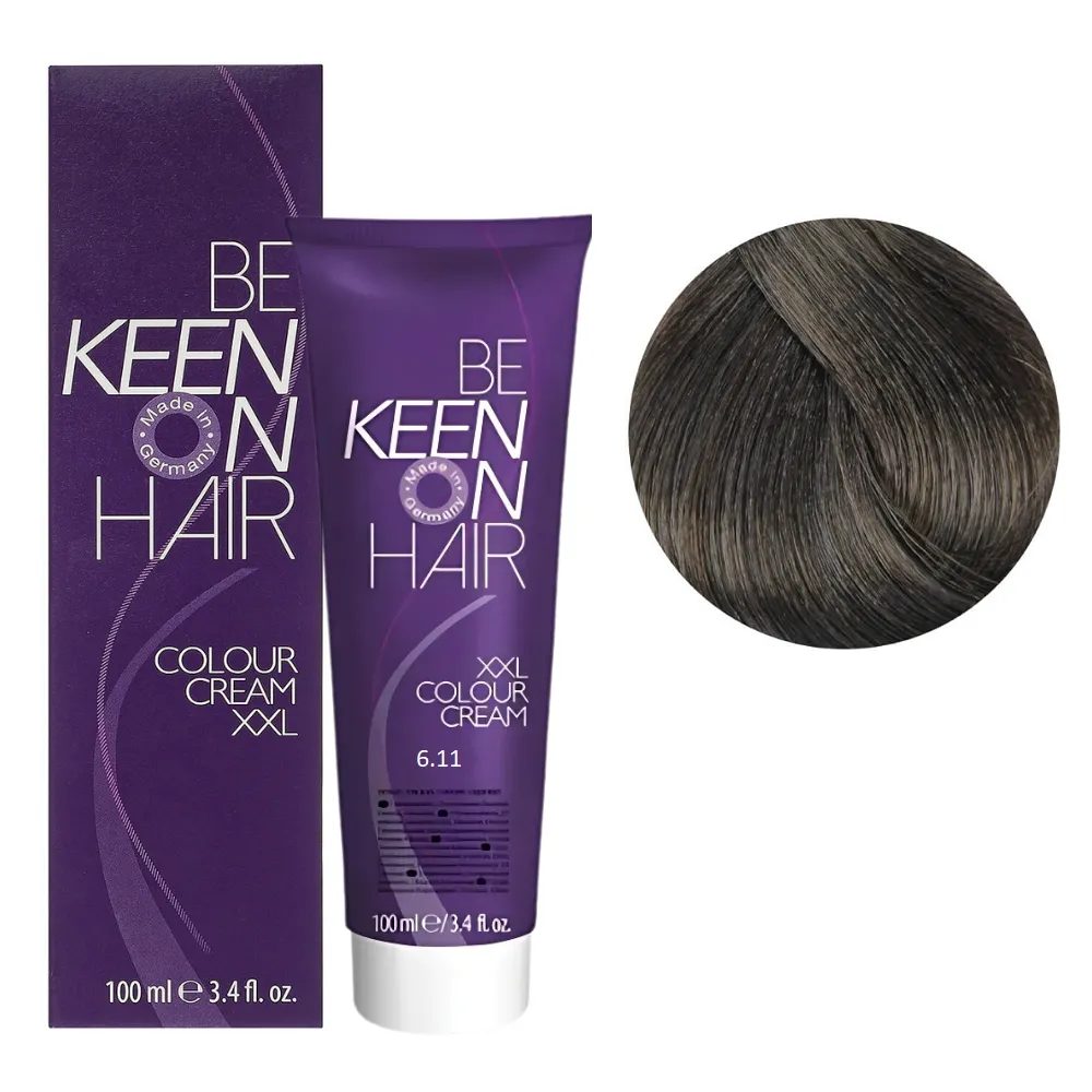 Краще співвідношення ціни та якості! Colour Cream XXL KEEN фарба німецького виробника завоювала визнання професійних майстрів і покупців по всій Європі. Палітра налічує понад 116 відтінків для креативної комбінації кольорів. Всі тони поєднуються між собою, їх можна змішувати, створюючи свій неповторний стиль. Кремоподібна текстура фарби легко наноситься, не тече і забезпечує рівномірний результат. Особливості продукту: 6/11 темний блондин попелястий інтенсивний Стійка крем-фарба для волосся, 100 мл Colour Cream XXL KEEN Активні компоненти: гідролізовані молочні протеїни піклуються про волосся під час фарбування зберігають необхідну вологість, надає волоссю блиску та пружності. Застосування: 6/11 темний блондин попелястий інтенсивний Стійка крем-фарба для волосся, 100 мл Colour Cream XXL KEEN Змішати в неметалевому посуді крем-фарбу Colour Cream XXL KEEN із крем-окислювачем. Фарбуючу суміш наносити на сухе чисте волосся. Вибір концентрації крем-окислювача 1,9%, 3%, 6%, 9% або 12% залежить від бажаного рівня освітлення. При використанні додаткового джерела тепла час витримки зменшується вдвічі. Пропорції змішування: 6/11 темний блондин попелястий інтенсивний Стійка крем-фарба для волосся, 100 мл Colour Cream XXL KEEN Час витримки: 35 хвилин. Продукт призначений для професійного використання. Уважно ознайомтесь з інструкцією.Стійка крем-фарба для волосся Colour Cream XXL KEEN