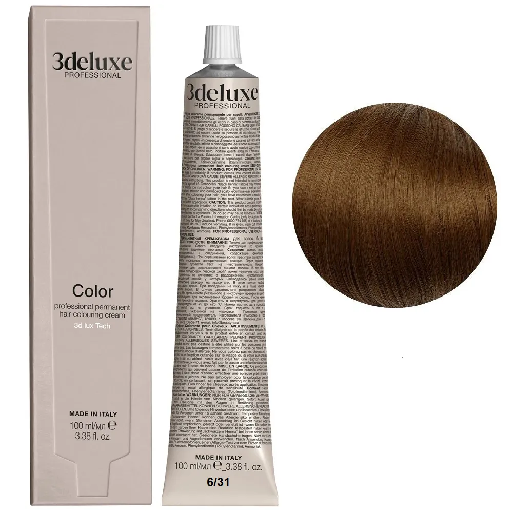 Професійна стійка кремова фарба для волосся Permanent Hair Color 3deluxe з неймовірним відбиттям світла та чудовим захистом, забезпечує волоссю неперевершену якість. Містить технологію 3D Lux, яка забезпечує насичений, яскравий, багатогранний колір: Особливості продукту: 6/31 темний блондин золотисто-попелястий Фарба для волосся, 100 мл Permanent Hair Color 3deluxe Professional Активні компоненти: 6/31 темний блондин золотисто-попелястий Фарба для волосся, 100 мл Permanent Hair Color 3deluxe Professional Застосування: 6/31 темний блондин золотисто-попелястий Фарба для волосся, 100 мл Permanent Hair Color 3deluxe Professional Змішайте в пластмасовому посуді крему-фарбу Color 3deluxe з кремом-окислювачем 1,5%, 3%, 6%, 9% або 12%. Пропорції змішування: для основної палітри відтінків - 1:1,5, для освітлювального ряду - 1:2, для більш насиченого кольору - 1:1. Час витримки залежить від бажаного результату. Важливо! Продукт для професійного застосування. Уважно ознайомтесь з інструкцією.Фарба для волосся Permanent Hair Color 3deluxe Professional