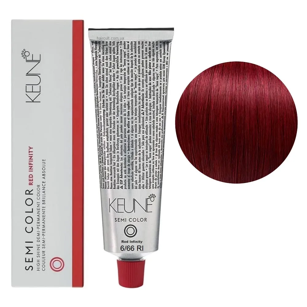 Keune Semi Color - це інноваційна безаміачна крем-фарба для волосся, створена на основі технології Silsoft, що забезпечує стійкий результат без шкоди для структури волосся. Засіб ідеально підходить для тонування, освіження кольору та фарбування до 70% сивини. Формула нового покоління містить активні компоненти, які м’яко відновлюють природний відтінок, роблять волосся гладким, м’яким і еластичним. Завдяки нейтральному pH та відсутності аміаку, фарба підходить навіть для чутливої шкіри голови та волосся після хімічних процедур. Особливості продукту: 6/66 RI Темний блондин червоний інтенсивний Фарба для тонування волосся без аміаку, 60 мл Demi-Permanent Color SЕМІ COLOR KEUNE Застосування: 6/66 RI Темний блондин червоний інтенсивний Фарба для тонування волосся без аміаку, 60 мл Demi-Permanent Color SЕМІ COLOR KEUNE Фарбу Keune Semi Color слід змішати з Activator Semi Color (2.25%) або Activator Intense Semi Color (3%) у співвідношенні 1:2. Час витримки 20 хвилин. Продукт для професійного використання. Уважно ознайомтесь з офіційною інструкцією.Фарба для тонування волосся без аміаку Demi-Permanent Color SЕМІ COLOR KEUNE