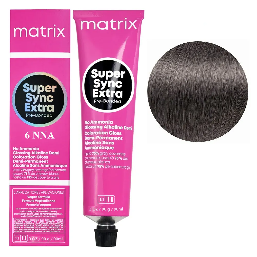 SUPER SYNC EXTRA Pre-Bonded від MATRIX - це інноваційний тонувальний засіб без аміаку, створений для м’якого фарбування та догляду за волоссям. Формула з технологією Pre-Bonded зміцнює внутрішні зв’язки волосини, мінімізує пошкодження та зберігає еластичність навіть після інтенсивних процедур. Продукт забезпечує рівномірне тонування з природним блискомта дарує волоссю доглянутий вигляд. SUPER SYNC EXTRA зафарбовує до 75% сивини. Завдяки відсутності аміаку фарба діє делікатно, не пересушує волосся та підходить навіть для тонкого й ослабленого типу. Результат зберігається до 20 циклів миття голови, поступово та рівномірно вимиваючись без різких переходів. Особливості продукту: 6NNA Темний блондин натуральний інтенсивний Тонер для волосся на лужній основі без аміаку, 90 мл SUPER SYNC EXTRA Pre-Bonded MATRIX Застосування: 6NNA Темний блондин натуральний інтенсивний Тонер для волосся на лужній основі без аміаку, 90 мл SUPER SYNC EXTRA Pre-Bonded MATRIX Пропорції змішування 1:1 з проявником Matrix Cream Developer 3% (10 Volume). Нанесення на чисте волосся. Час витримки - 20 хвилин при кімнатній температурі. Змити водою. Перед застосуванням уважно ознайомтесь з інструкцією! Для професійного використання!Тонер для волосся на лужній основі без аміаку для фарбування сивини SUPER SYNC EXTRA Pre-Bonded MATRIX