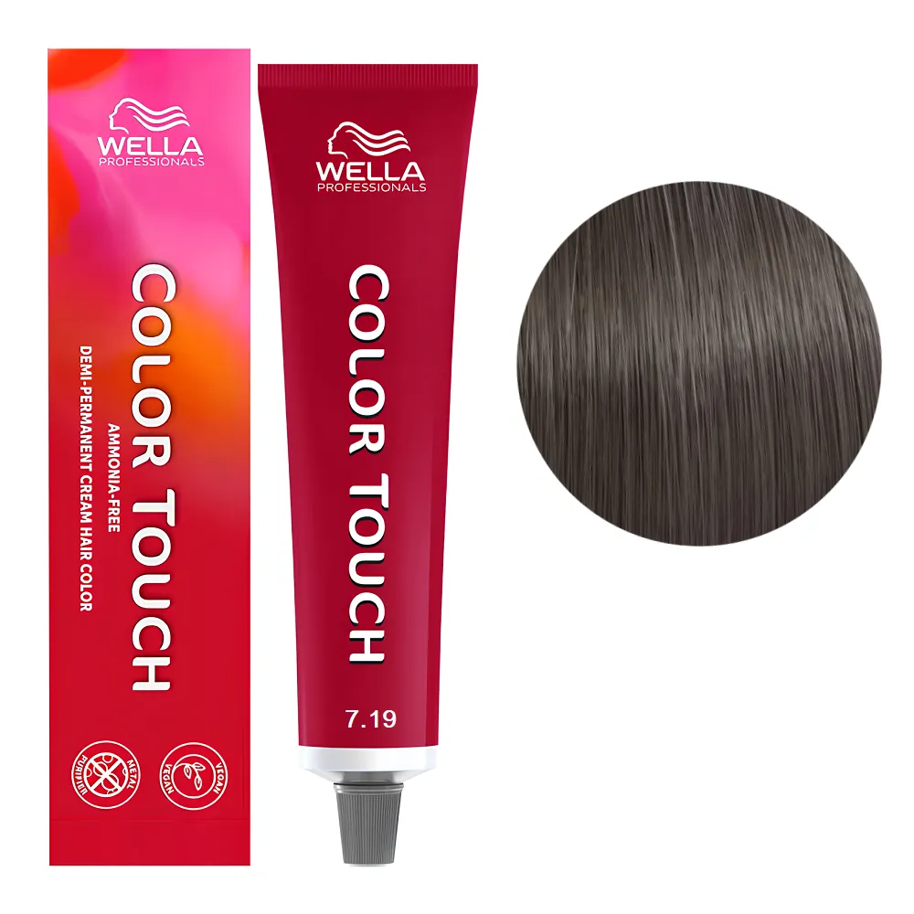 Фарба без аміаку Color Touch - це новий рівень фарбування: багатовимірне тонування волосся. Веганський склад із вмістом до 85% інгредієнтів натурального походження, без аміаку (за винятком Color Touch Plus, що призначена для сивого волосся), робить фарбування максимально делікатним. Особливості продукту: 7/19 середній блондин попелястий сандре Фарба для тонування волосся без аміаку (Оновлена формула), 60 мл COLOR TOUCH Wella Professionals Усі відтінки базової гами Color Touch можна змішувати між собою. Застосування: 7/19 середній блондин попелястий сандре Фарба для тонування волосся без аміаку (Оновлена формула), 60 мл COLOR TOUCH Wella Professionals Час витримки: з теплом 15 хвилин, без тепла 20-25 хвилин. Продукт призначений для професійного використання. Уважно ознайомтесь з інструкцією.Тонувальна фарба без аміаку Color Touch Wella Professionals з оновленою веганською формулою