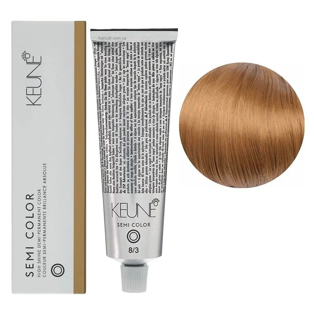 Keune Semi Color - це інноваційна безаміачна крем-фарба для волосся, створена на основі технології Silsoft, що забезпечує стійкий результат без шкоди для структури волосся. Засіб ідеально підходить для тонування, освіження кольору та фарбування до 70% сивини. Формула нового покоління містить активні компоненти, які м’яко відновлюють природний відтінок, роблять волосся гладким, м’яким і еластичним. Завдяки нейтральному pH та відсутності аміаку, фарба підходить навіть для чутливої шкіри голови та волосся після хімічних процедур. Особливості продукту: 8/3 Світлий блондин золотистий Фарба для тонування волосся без аміаку, 60 мл Demi-Permanent Color SЕМІ COLOR KEUNE Застосування: 8/3 Світлий блондин золотистий Фарба для тонування волосся без аміаку, 60 мл Demi-Permanent Color SЕМІ COLOR KEUNE Фарбу Keune Semi Color слід змішати з Activator Semi Color (2.25%) або Activator Intense Semi Color (3%) у співвідношенні 1:2. Час витримки 20 хвилин. Продукт для професійного використання. Уважно ознайомтесь з офіційною інструкцією.Фарба для тонування волосся без аміаку Demi-Permanent Color SЕМІ COLOR KEUNE