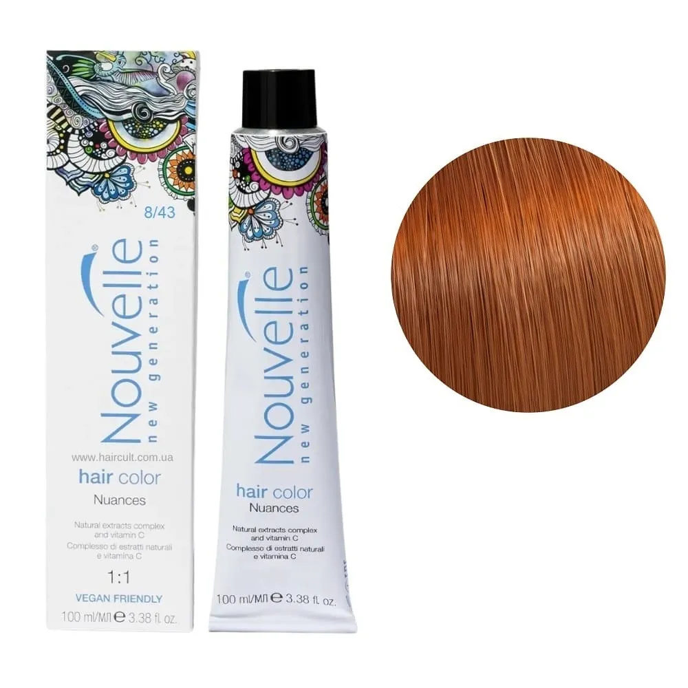 Nouvelle New Generation Hair Color - це стійка аміачна крем-фарба для волосся, яка забезпечує насичений, тривалий колір і професійний результат. Продукт пропонує широку палітру, що включає натуральні, яскраві, модні та ультрасвітлі тони. Особливості продукту: 8/43 світло-мідний золотисто-коричневий Фарба для волосся перманентна, 100мл Permanent Hair Color Nouvelle Застосування: 8/43 світло-мідний золотисто-коричневий Фарба для волосся перманентна, 100мл Permanent Hair Color Nouvelle Фарбу змішують із окислювачем Nouvelle Developer Cream Peroxide (1,5%, 3%, 6%, 9% або 12%) у відповідних пропорціях залежно від бажаного ефекту: тонування, освітлення чи зафарбовування сивини. Суміш наноситься на сухе, немите волосся із витримкою 25-50 хвилин, залежно від інтенсивності кольору. Після фарбування рекомендується використовувати шампунь і доглядові засоби з серії Nouvelle Color Glow для збереження кольору і здоров’я волосся.Фарба для волосся перманентна Permanent Hair Color Nouvelle