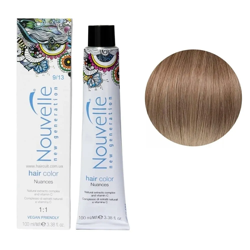Nouvelle New Generation Hair Color - це стійка аміачна крем-фарба для волосся, яка забезпечує насичений, тривалий колір і професійний результат. Продукт пропонує широку палітру, що включає натуральні, яскраві, модні та ультрасвітлі тони. Особливості продукту: 9/13 попелястий золотисто-русявий Фарба для волосся перманентна, 100мл Permanent Hair Color Nouvelle Застосування: 9/13 попелястий золотисто-русявий Фарба для волосся перманентна, 100мл Permanent Hair Color Nouvelle Фарбу змішують із окислювачем Nouvelle Developer Cream Peroxide (1,5%, 3%, 6%, 9% або 12%) у відповідних пропорціях залежно від бажаного ефекту: тонування, освітлення чи зафарбовування сивини. Суміш наноситься на сухе, немите волосся із витримкою 25-50 хвилин, залежно від інтенсивності кольору. Після фарбування рекомендується використовувати шампунь і доглядові засоби з серії Nouvelle Color Glow для збереження кольору і здоров’я волосся.Фарба для волосся перманентна Permanent Hair Color Nouvelle