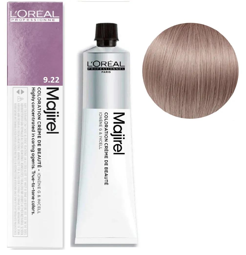 Majirel від L’Oreal Professionnel - це професійна стійка крем-фарба, створена для майстрів, які цінують точність, передбачуваність і розкішний результат фарбування. Формула розроблена з урахуванням останніх досягнень у сфері колористики, щоб забезпечити насичений колір, ідеальне покриття сивини та неперевершений блиск. Завдяки технології Ionene G™ та Incell™ волосся зберігає здорову структуру навіть після інтенсивного фарбування. Активні компоненти проникають у глибину волокна, зміцнюють кутикулу та підвищують стійкість кольору. Результат - шовковисті пасма з глибоким, багатовимірним відтінком. Особливості продукту: 9/22 Дуже світлий блондин фіолетовий інтенсивний Фарба для волосся стійка, 60 мл Majirel L`Oreal Professionnel (оновлений формат) Застосування: 9/22 Дуже світлий блондин фіолетовий інтенсивний Фарба для волосся стійка, 60 мл Majirel L`Oreal Professionnel (оновлений формат) Пропорції змішування з окислювачем: Час витримки залежить від обраної фарби та бажаного результату фарбування. Фарба Majirel від L’Oreal Professionnel призначена для професійного використання! Уважно ознайомтесь з інструкцією.Фарба для волосся стійка Majirel L`Oreal Professionnel (оновлений формат - 60 мл)