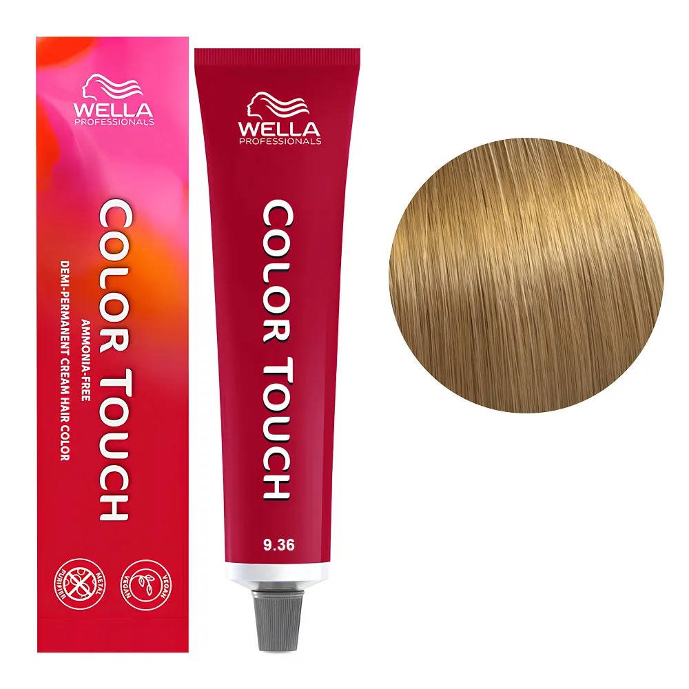 Фарба без аміаку Color Touch - це новий рівень фарбування: багатовимірне тонування волосся. Веганський склад із вмістом до 85% інгредієнтів натурального походження, без аміаку (за винятком Color Touch Plus, що призначена для сивого волосся), робить фарбування максимально делікатним. Особливості продукту: 9/36 яскравий блондин золотисто-фіолетовий Фарба для тонування волосся без аміаку (Оновлена формула), 60 мл COLOR TOUCH Wella Professionals Усі відтінки базової гами Color Touch можна змішувати між собою. Застосування: 9/36 яскравий блондин золотисто-фіолетовий Фарба для тонування волосся без аміаку (Оновлена формула), 60 мл COLOR TOUCH Wella Professionals Час витримки: з теплом 15 хвилин, без тепла 20-25 хвилин. Продукт призначений для професійного використання. Уважно ознайомтесь з інструкцією.Тонувальна фарба без аміаку Color Touch Wella Professionals з оновленою веганською формулою