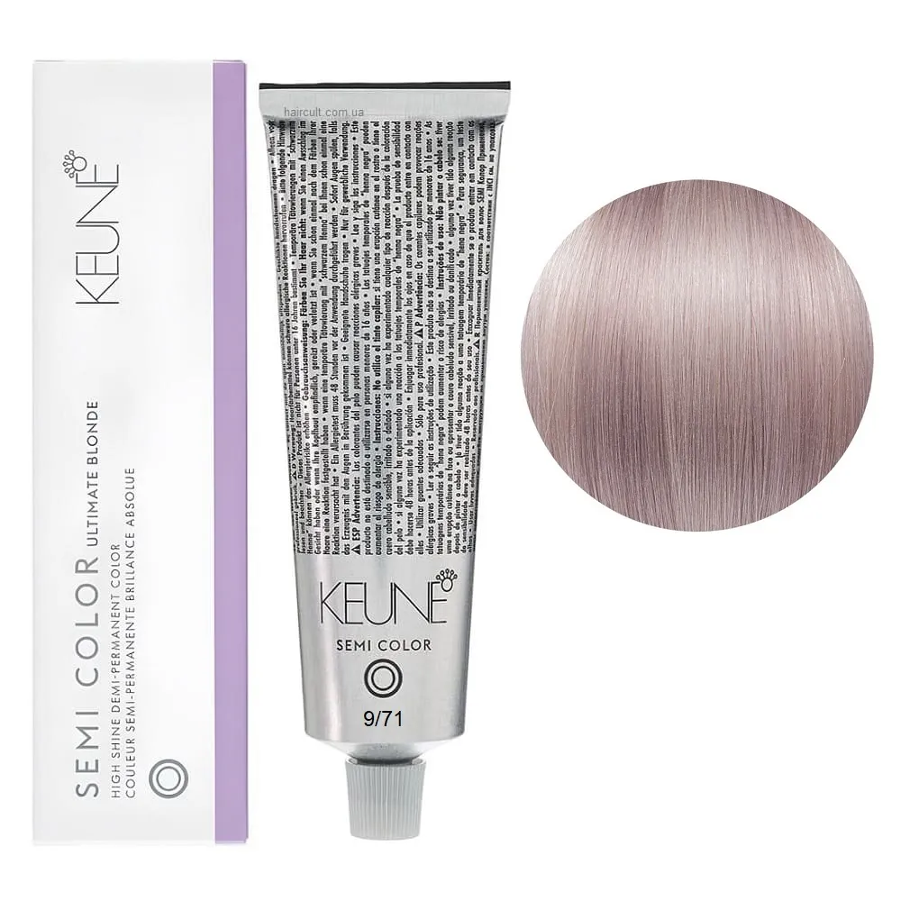 Keune Semi Color - це інноваційна безаміачна крем-фарба для волосся, створена на основі технології Silsoft, що забезпечує стійкий результат без шкоди для структури волосся. Засіб ідеально підходить для тонування, освіження кольору та фарбування до 70% сивини. Формула нового покоління містить активні компоненти, які м’яко відновлюють природний відтінок, роблять волосся гладким, м’яким і еластичним. Завдяки нейтральному pH та відсутності аміаку, фарба підходить навіть для чутливої шкіри голови та волосся після хімічних процедур. Особливості продукту: 9/71 Дуже світлий блондин фіолетово-попелястий Фарба для тонування волосся без аміаку, 60 мл Demi-Permanent Color SЕМІ COLOR KEUNE Застосування: 9/71 Дуже світлий блондин фіолетово-попелястий Фарба для тонування волосся без аміаку, 60 мл Demi-Permanent Color SЕМІ COLOR KEUNE Фарбу Keune Semi Color слід змішати з Activator Semi Color (2.25%) або Activator Intense Semi Color (3%) у співвідношенні 1:2. Час витримки 20 хвилин. Продукт для професійного використання. Уважно ознайомтесь з офіційною інструкцією.Фарба для тонування волосся без аміаку Demi-Permanent Color SЕМІ COLOR KEUNE