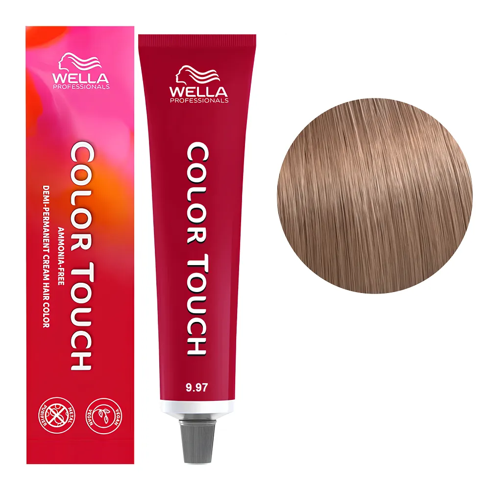 Фарба без аміаку Color Touch - це новий рівень фарбування: багатовимірне тонування волосся. Веганський склад із вмістом до 85% інгредієнтів натурального походження, без аміаку (за винятком Color Touch Plus, що призначена для сивого волосся), робить фарбування максимально делікатним. Особливості продукту: 9/97 дуже світлий блондин сандре коричневий Фарба для тонування волосся без аміаку (Оновлена формула), 60 мл COLOR TOUCH Wella Professionals Усі відтінки базової гами Color Touch можна змішувати між собою. Застосування: 9/97 дуже світлий блондин сандре коричневий Фарба для тонування волосся без аміаку (Оновлена формула), 60 мл COLOR TOUCH Wella Professionals Час витримки: з теплом 15 хвилин, без тепла 20-25 хвилин. Продукт призначений для професійного використання. Уважно ознайомтесь з інструкцією.Тонувальна фарба без аміаку Color Touch Wella Professionals з оновленою веганською формулою