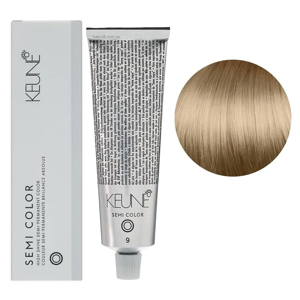 Keune Semi Color - це інноваційна безаміачна крем-фарба для волосся, створена на основі технології Silsoft, що забезпечує стійкий результат без шкоди для структури волосся. Засіб ідеально підходить для тонування, освіження кольору та фарбування до 70% сивини. Формула нового покоління містить активні компоненти, які м’яко відновлюють природний відтінок, роблять волосся гладким, м’яким і еластичним. Завдяки нейтральному pH та відсутності аміаку, фарба підходить навіть для чутливої шкіри голови та волосся після хімічних процедур. Особливості продукту: 9 Дуже світлий блондин натуральний Фарба для тонування волосся без аміаку, 60 мл Demi-Permanent Color SЕМІ COLOR KEUNE Застосування: 9 Дуже світлий блондин натуральний Фарба для тонування волосся без аміаку, 60 мл Demi-Permanent Color SЕМІ COLOR KEUNE Фарбу Keune Semi Color слід змішати з Activator Semi Color (2.25%) або Activator Intense Semi Color (3%) у співвідношенні 1:2. Час витримки 20 хвилин. Продукт для професійного використання. Уважно ознайомтесь з офіційною інструкцією.Фарба для тонування волосся без аміаку Demi-Permanent Color SЕМІ COLOR KEUNE