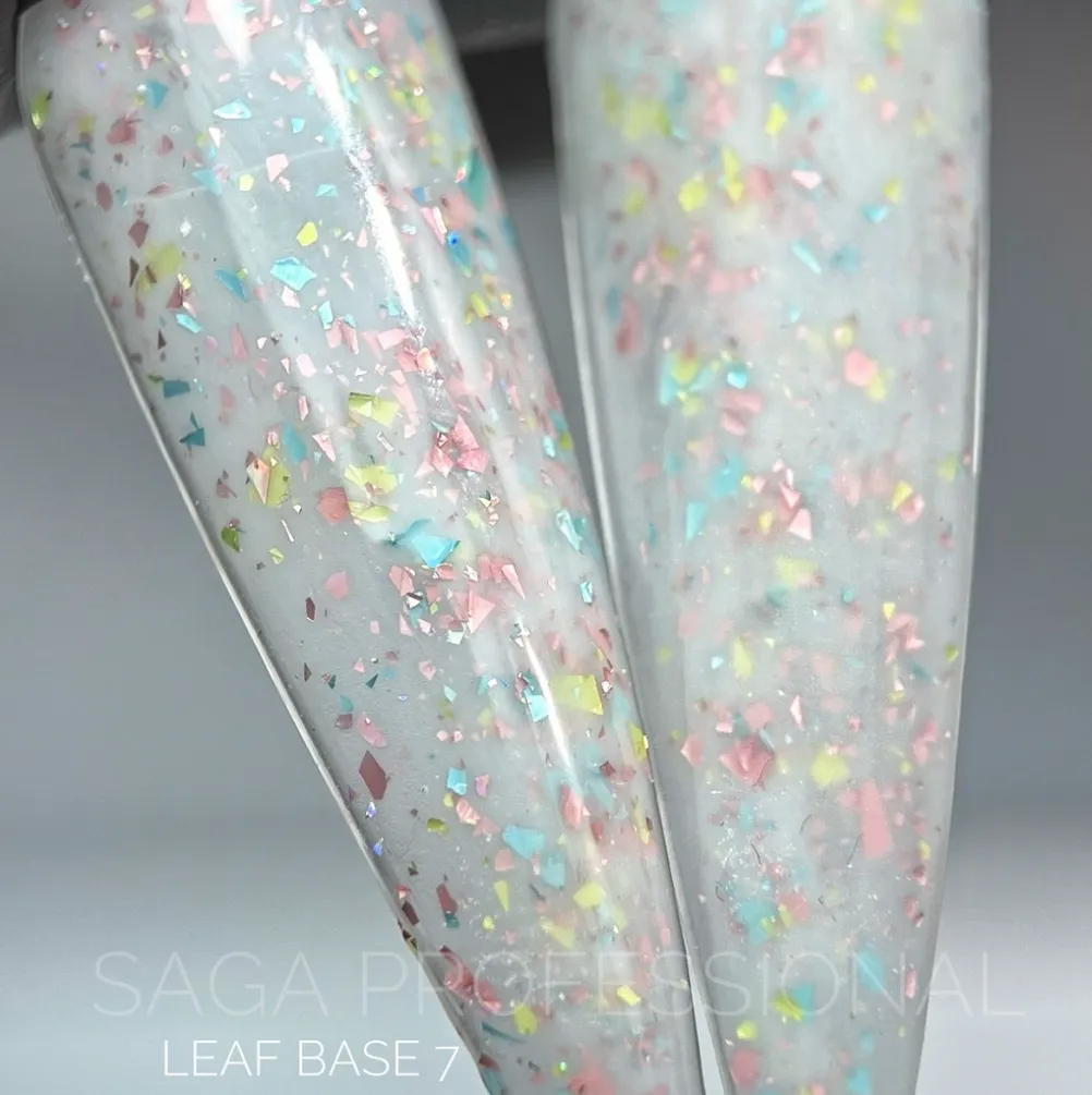 Колір камуфлюючої бази з поталлю Leaf Bаse №07 — молочно-білий з різнокольоровою поталлю. Leaf Base від SAGA Professional — це інноваційна камуфлююча база, створена для ефектного та швидкого манікюру. Завдяки унікальній формулі з додаванням дрібних блискучих Особливості: База з поталлю Leaf Base SAGA ProfessionalБаза з поталлю Leaf Base SAGA Professional