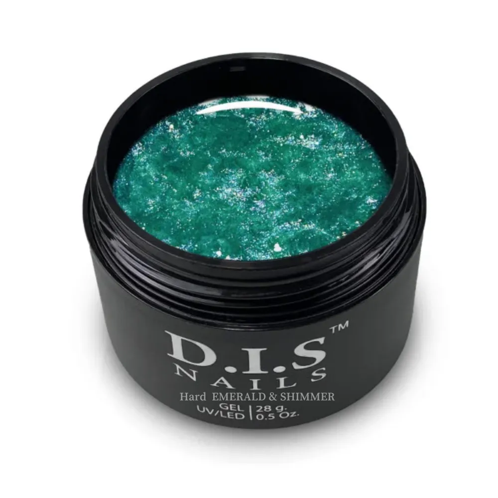 ОБ`ЄМ: 28 г Час полімеризації: Увага! Використовуйте професійні UV/LED-лампи потужністю 36 Вт або LED-лампи потужністю не менше 20 Вт для якісної полімеризації.HARD EMERALD & SHIMMER від D.I.S NAILS — камуфлюючий твердий гель з шиммером, який використовується для моделювання форми нігтів та нарощування нігтьової пластини. Гель має середню в’язкість і сумісний з усіма гелевими системами.