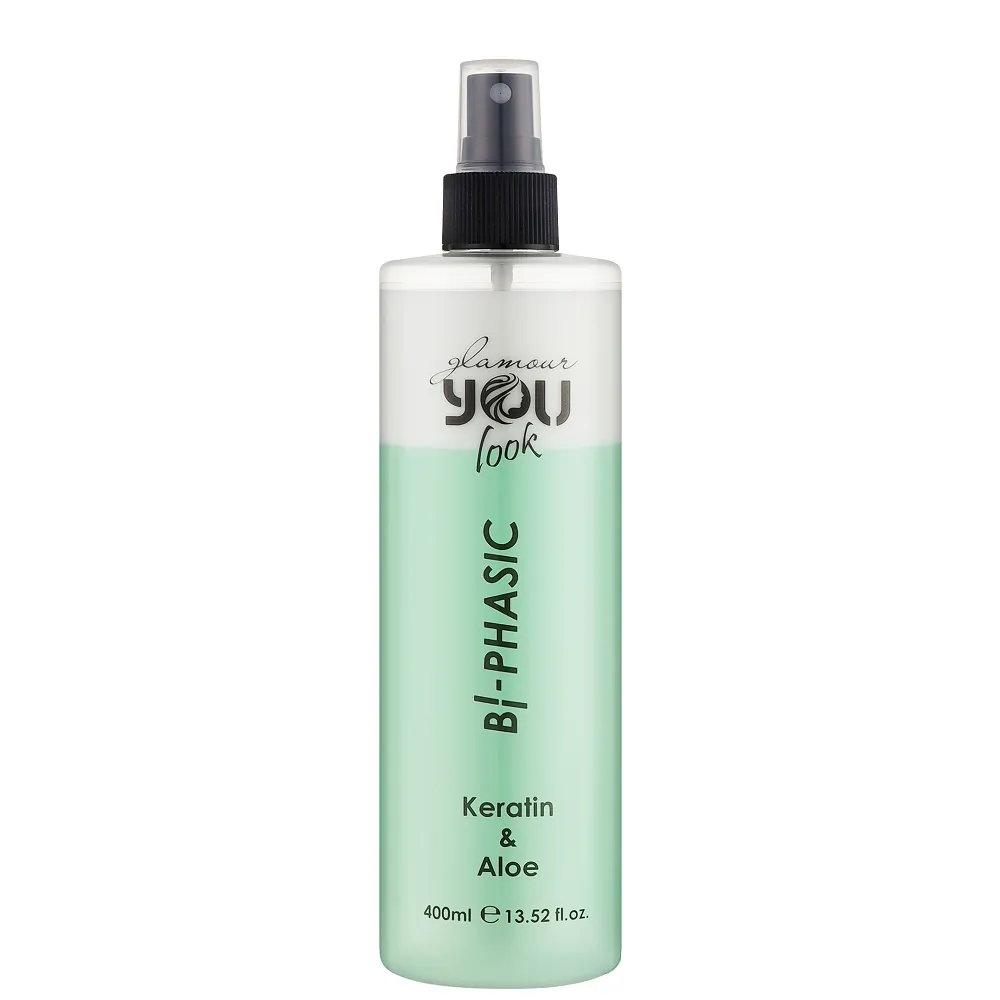 Спрей Keratin & Aloe BI-PHASIC це засіб, який завдяки кератину та екстракту алое ефективно розплутує волосся та забезпечує глибоке зволоження. Особливості продукту: Двофазний спрей-кондиціонер для всіх типів волосся, 400 мл Keratin & Aloe BI-PHASIC Glamour You look Professional Застосування: Двофазний спрей-кондиціонер для всіх типів волосся, 400 мл Keratin & Aloe BI-PHASIC Glamour You look Professional Необхідно змішати дві фази, струсивши флакон, розпилити на вологе або сухе волосся з відстані не менше 20см. Розчесати для рівномірного розподілу продукту по волоссю, приступити до укладання. Не змивати.Двофазний спрей-кондиціонер для всіх типів волосся Keratin & Aloe BI-PHASIC Glamour You look Professional