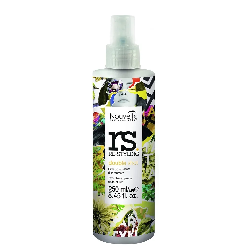 Двофазний засіб Double Shot для моментального зволоження, блиску і відновлення структури сухого і виснаженого волосся. Полімери, що входять до його складу, покривають поверхню волосся однорідною повітропроникною мікроплівкою, надає їм блиск і шовковистість. Полегшує розчісування. Ідеально підходить для сухого, чутливого і посіченого волосся. Особливості продукту: Двофазний спрей для блиску та відновлення волосся, 250 мл Double Shot Re-styling Nouvelle Активні компоненти: Двофазний спрей для блиску та відновлення волосся, 250 мл Double Shot Re-styling Nouvelle Блиск: 3/5. Фіксація: 2/5. Застосування: Двофазний спрей для блиску та відновлення волосся, 250 мл Double Shot Re-styling Nouvelle Збовтати флакон перед застосуванням, потім нанести на вологе або сухе волосся з відстані 10-15 см і приступити до укладання. Не змивати.Двофазний спрей для блиску та відновлення волосся Double Shot Re-styling Nouvelle