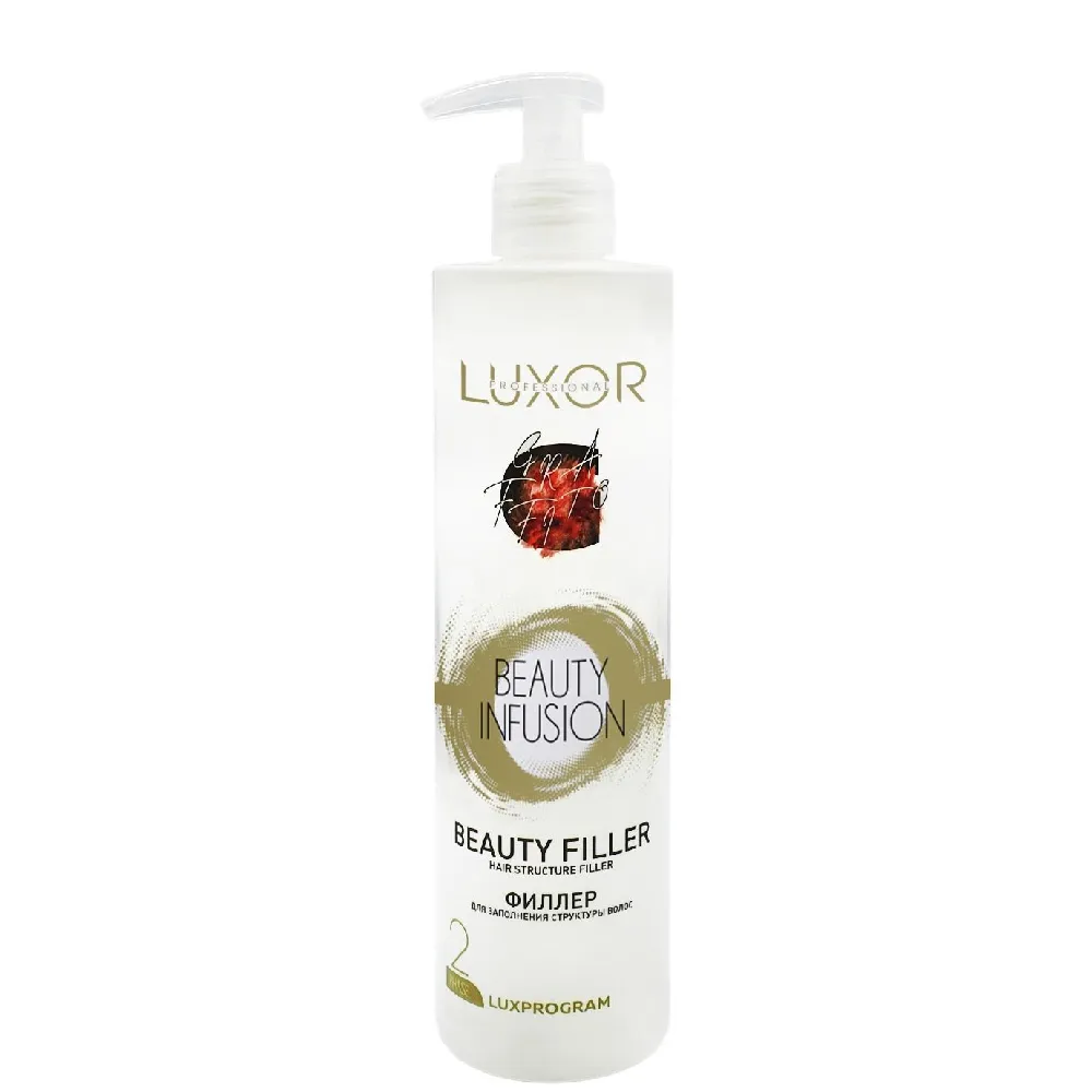 Beauty Infusion це ексклюзивна програма відновлення волосся на молекулярному рівні, яка допомагає успішно впоратися з проблемами пошкодженого волосся. Філер Hair Structure Filler BEAUTY FILLER має спеціальний склад для інтенсивної реконструкції пошкодженого, сухого та ламкого волосся. Гідролізований кератин, що входить до складу, реконструює і зміцнює структуру волосся, робить його здоровим, щільним і об`ємним. Олії бавовни, оливи, солодкого мигдалю та авокадо вирівнюють структуру волосся, надають блиску та еластичності. Олії какао і манго, що містяться в складі, зволожують волосся, відновлюючи еластичність, шовковистість і блиск без обтяження. Особливості продукту: Активні компоненти: гідролізований кератин, олії бавовни, оливи, солодкого мигдалю,авокадо, какао та манго. Застосування: Філер для заповнення структури волосся (фаза 2) Hair Structure Filler BEAUTY FILLER Beauty Infusion LUXOR Professional