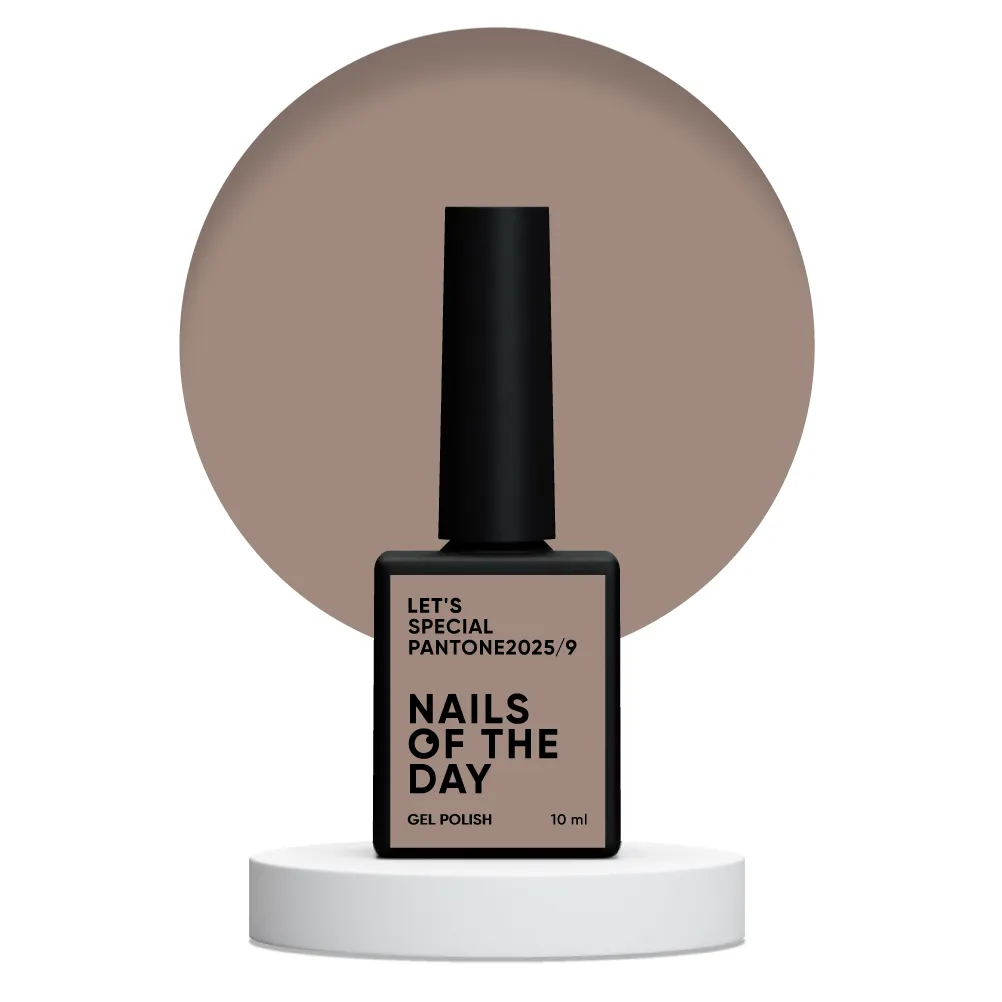 • Gel Polish Let’s special Pantone2025/9 — холодний кавово-бежевий гель–лак для нігтів, що перекриває в один шар.