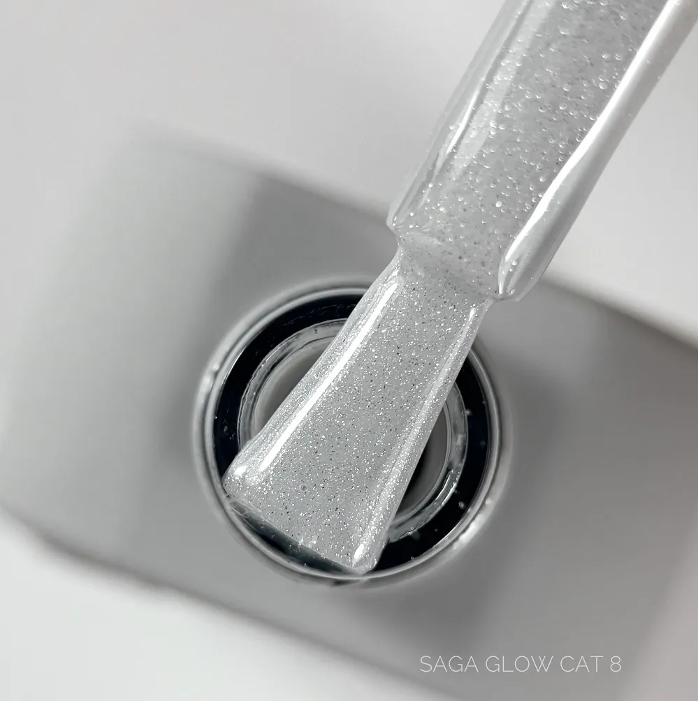 Гель-лак SAGA Professional Glow Cat — це магнітне декоративне покриття з ефектом «кришталевого котячого ока», що створює глибокий, мінливий колір із мерехтливими променями світла.