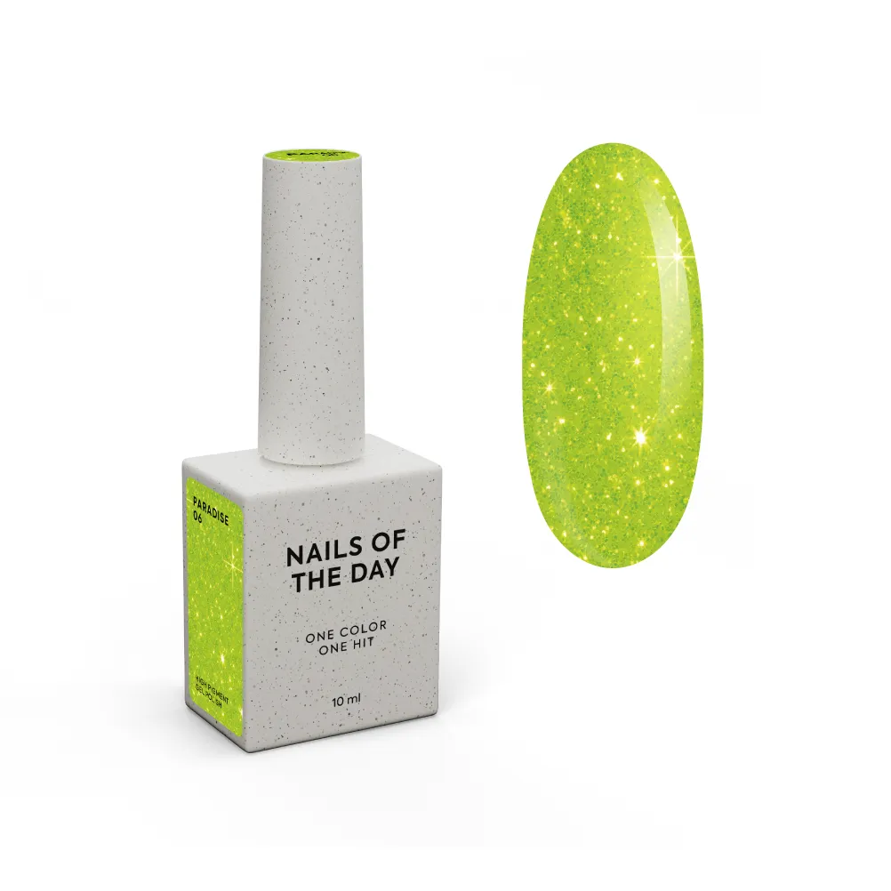 • Gel Polish Paradise №06 — неоново-жовтий гель–лак для нігтів, що перекриває в один шар.