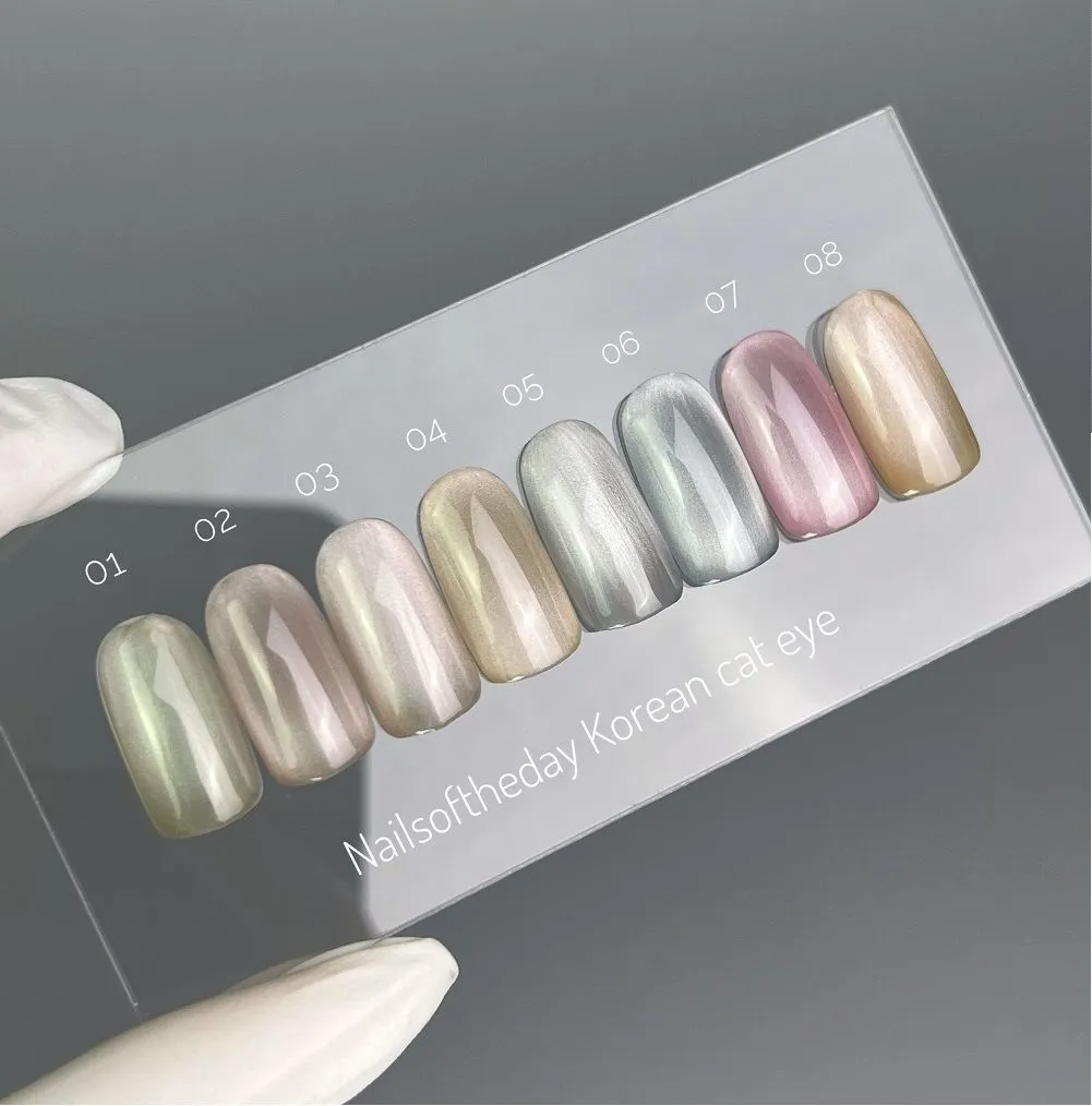 Korean cat eye — справжні скляні корейські котики, розроблені командою Nailsoftheday. Ефект порцелянових нігтиків, напівпрозорі сучасні відтінки.