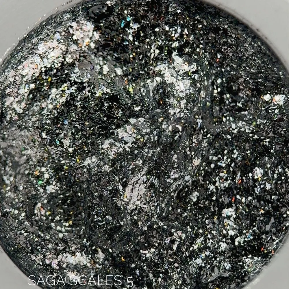 SAGA paste наповнена різнорозмірними блискітками, що нагадують перлинну крихту. Залежно від освітлення частинки переливаються різними відтінками, створюючи перламутровий ефект. Можна застосовувати, щоб робити об`ємні елементи декору: хвилі, краплі, абстракції.