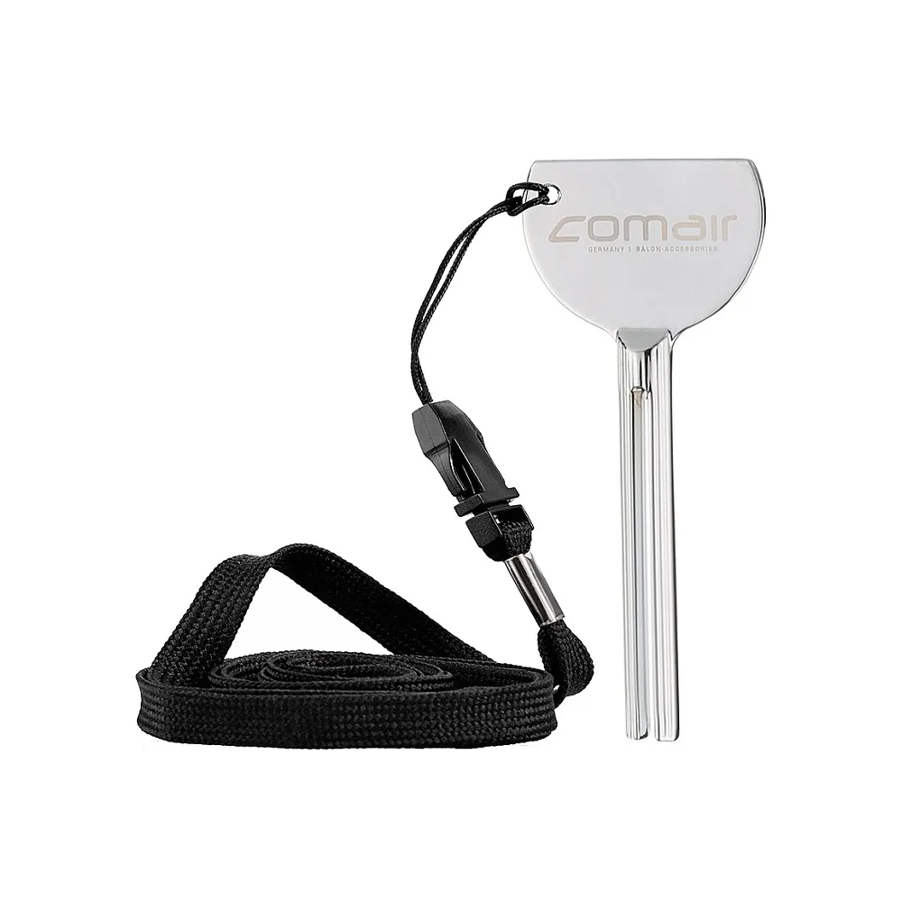 Металевий ключ Comair - зручний аксесуар для професійного використання, який допомагає економно витискати фарбу з тюбика до останньої краплі. Дуже часто фарба залишається всередині ємності, і дістати її руками складно - цей ключ легко впорається із цим завданням, заощаджуючи час майстра. Виготовлений із високоякісного нержавіючого металу, стійкого до корозії та механічних пошкоджень. Оснащений стрічкою, щоб не загубитися під час роботи, що робить його ще зручнішим у використанні.Ключ для видавлювання фарб металевий, великий зі стрічкою 3010101/791901 Comair Germany