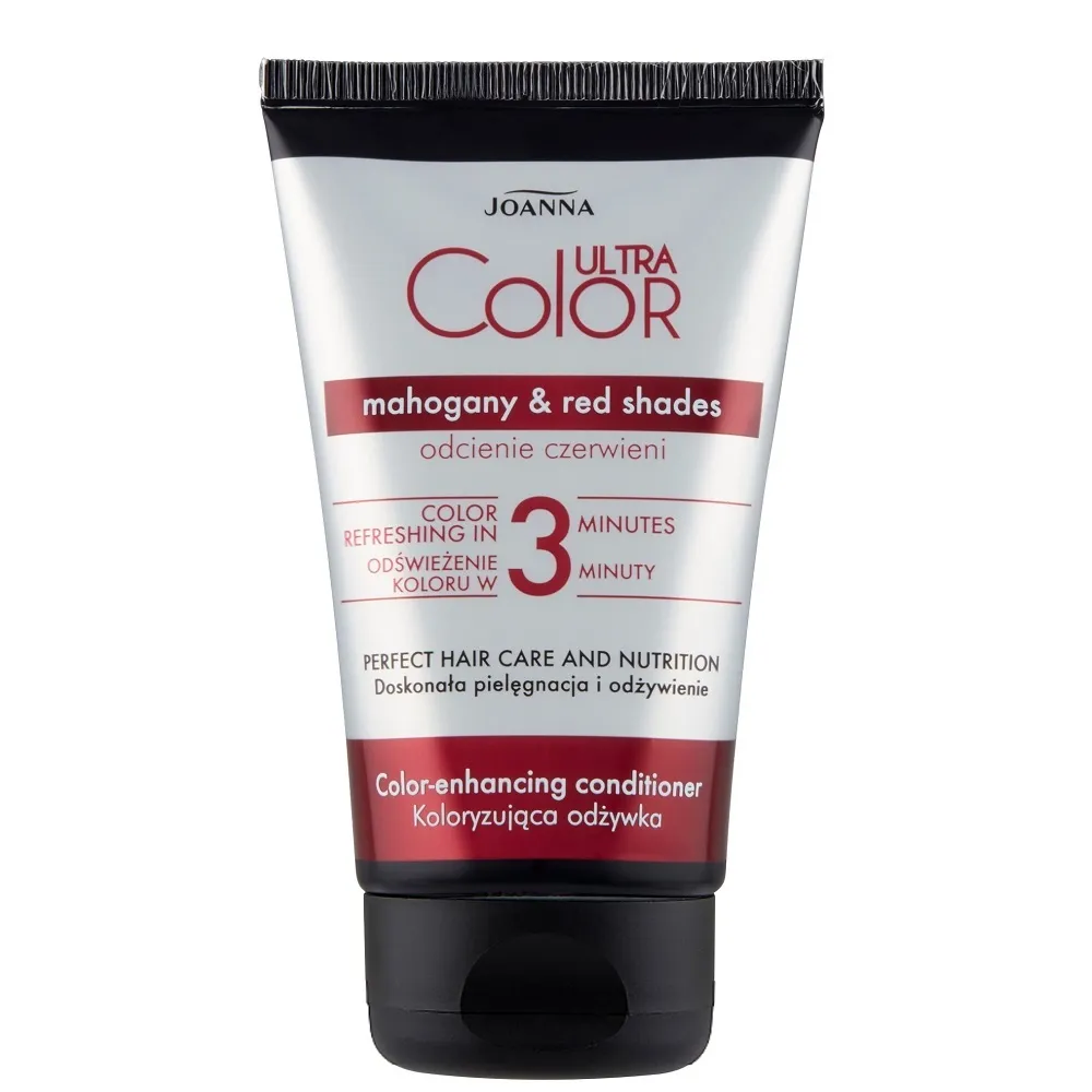 Відтінковий кондиціонер Ultra Color Joanna Mahogany & Red Shades створений для підкреслення та освіження махагонових, вишневих і червоних відтінків натурального та фарбованого волосся. Засіб швидко повертає яскравість і насиченість кольору, робить волосся доглянутим і сяючим. Формула кондиціонера не містить аміаку та перекису водню, що забезпечує м’яку дію без пошкодження структури волосся. Завдяки збалансованому складу кондиціонуючих компонентів і барвників інтенсивний результат досягається всього за 3 хвилини. Кондиціонер забезпечує тимчасовий, інтенсивний ефект: колір поступово змивається, а результат зберігається до 3–4 миттів голови, що дозволяє легко коригувати відтінок. Особливості продукту: Кондиціонер, що надає відтінку для волосся "Червоне дерево та червоні відтінки", 100 г "Mahogany & Red Shades" Ultra Color Joanna Застосування: Кондиціонер, що надає відтінку для волосся "Червоне дерево та червоні відтінки", 100 г "Mahogany & Red Shades" Ultra Color Joanna Надягніть рукавички і нанесіть достатню кількість бальзаму на волосся, намагайтеся не потрапляти на шкіру. Розподіліть бальзам по всій довжині волосся і залиште на 3 хвилини. Не знімаючи рукавичок промийте і укладіть волосся.Кондиціонер, що надає відтінку для волосся "Mahogany & Red Shades" Ultra Color Joanna