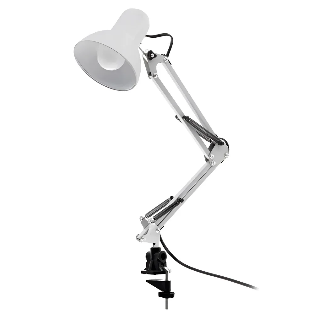 Біла настільна лампа ідеально підійде як для роботи в салоні, так і для домашнього використання. Лампа фіксується на робочому столі за допомогою гвинтів. Система кріплення, якою оснащена лампа, дозволяє повертати лампу на 360 градусів ліворуч/праворуч. Має фіксуючий пристрій із пластику, також ви можете використовувати лампу на столах де вже є спеціальне місце для кріплення лампи. Настільна лампа рацює з лампочкою із цоколем E 27, максимальна потужність 60 Вт. Має знімний абажур діаметром 15,5 см, кабель живлення довжиною 150 см та вимикач. Особливості продукту: Лампа настільна з довгою рукояттю на затиску до столу (БІЛА) Desk Lamp Лампа настільна з довгою рукояттю на затиску до столу Desk Lamp