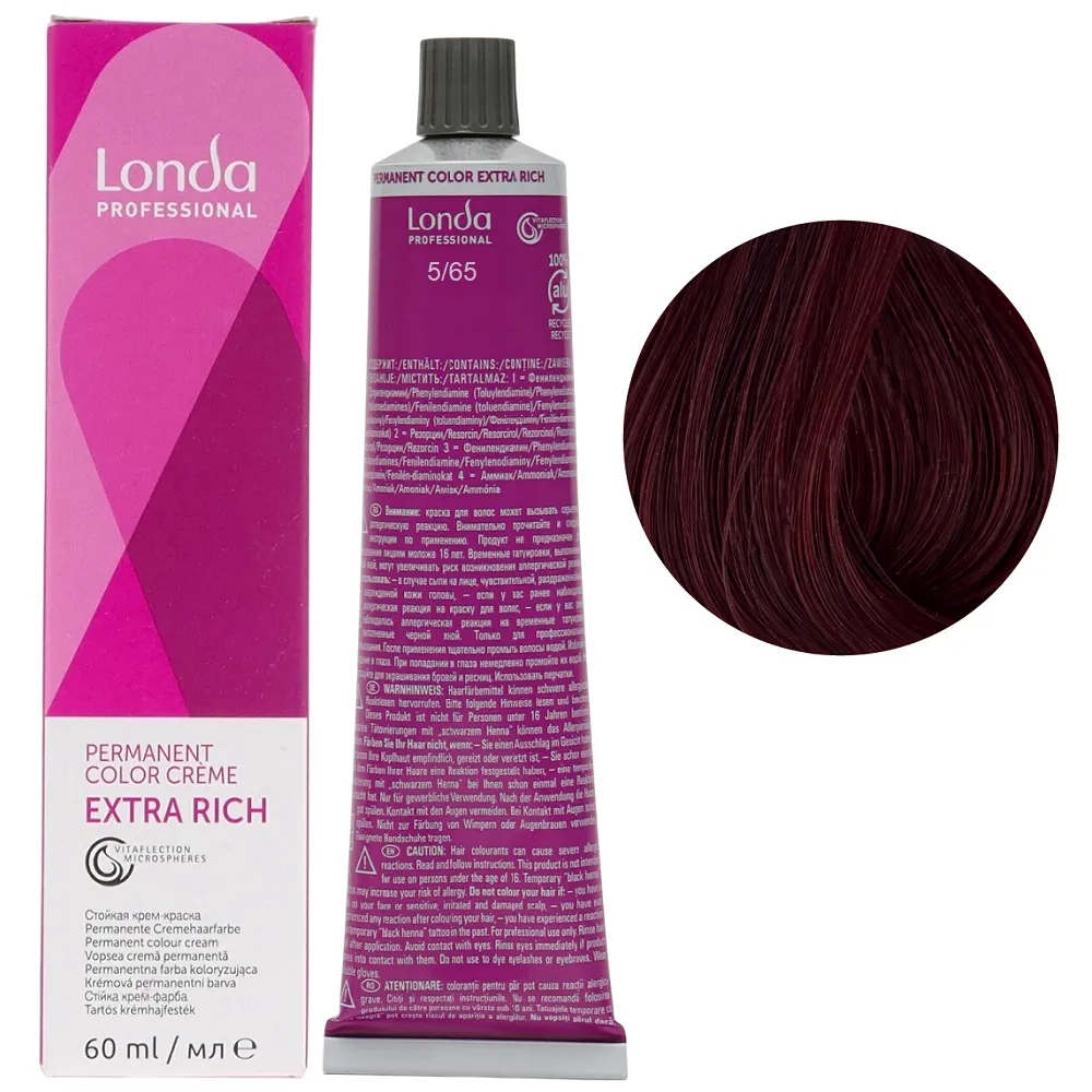 Стійка крем-фарба з мікросферами Vitaflection, які відбивають світло, для стійкого, насиченого життєвою енергією кольору і виняткового блиску волосся. Забезпечує тривалий результат – завдяки спеціальній технології фарба глибоко проникає у структуру волосся, забезпечує інтенсивний колір до 8 тижнів. Має широку палітру понад 100 відтінків для будь-якого типу та кольору волосся. Особливості продукту: 5/65 світлий брюнет фіолетово-червоний Стійка фарба для волосся, 60 мл Permanent Color Londa Professional Фарба має престижну систему ароматів з високоякісним маскуванням аміаку, що робить фарбування більш приємним досвідом для вашого клієнта. Застосування: 5/65 світлий брюнет фіолетово-червоний Стійка фарба для волосся, 60 мл Permanent Color Londa Professional Змішати фарбу Permanent Color з окислювачем Permanent Hair Colour Developer Londacolor 3%, 6%, 9% або 12%. Пропорції змішування: Час витримки залежить від бажаного результату. Важливо! Продукт для професійного застосування. Уважно ознайомтесь з інструкцією.Стійка фарба для волосся Permanent Color Londa Professional