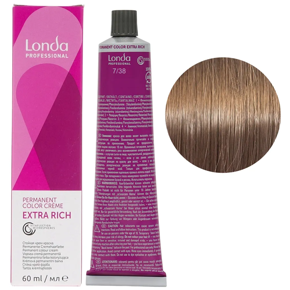 Стійка крем-фарба з мікросферами Vitaflection, які відбивають світло, для стійкого, насиченого життєвою енергією кольору і виняткового блиску волосся. Забезпечує тривалий результат – завдяки спеціальній технології фарба глибоко проникає у структуру волосся, забезпечує інтенсивний колір до 8 тижнів. Має широку палітру понад 100 відтінків для будь-якого типу та кольору волосся. Особливості продукту: 7/38 середній блондин золотисто-перлистий Стійка фарба для волосся, 60 мл Permanent Color Londa Professional Фарба має престижну систему ароматів з високоякісним маскуванням аміаку, що робить фарбування більш приємним досвідом для вашого клієнта. Застосування: 7/38 середній блондин золотисто-перлистий Стійка фарба для волосся, 60 мл Permanent Color Londa Professional Змішати фарбу Permanent Color з окислювачем Permanent Hair Colour Developer Londacolor 3%, 6%, 9% або 12%. Пропорції змішування: Час витримки залежить від бажаного результату. Важливо! Продукт для професійного застосування. Уважно ознайомтесь з інструкцією.Стійка фарба для волосся Permanent Color Londa Professional