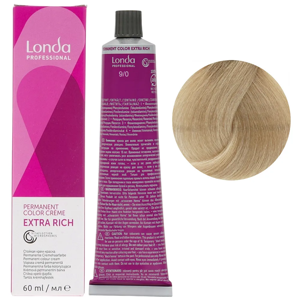 Стійка крем-фарба з мікросферами Vitaflection, які відбивають світло, для стійкого, насиченого життєвою енергією кольору і виняткового блиску волосся. Забезпечує тривалий результат – завдяки спеціальній технології фарба глибоко проникає у структуру волосся, забезпечує інтенсивний колір до 8 тижнів. Має широку палітру понад 100 відтінків для будь-якого типу та кольору волосся. Особливості продукту: 9/0 дуже світлий блондин натуральний Стійка фарба для волосся, 60 мл Permanent Color Londa Professional Фарба має престижну систему ароматів з високоякісним маскуванням аміаку, що робить фарбування більш приємним досвідом для вашого клієнта. Застосування: 9/0 дуже світлий блондин натуральний Стійка фарба для волосся, 60 мл Permanent Color Londa Professional Змішати фарбу Permanent Color з окислювачем Permanent Hair Colour Developer Londacolor 3%, 6%, 9% або 12%. Пропорції змішування: Час витримки залежить від бажаного результату. Важливо! Продукт для професійного застосування. Уважно ознайомтесь з інструкцією.Стійка фарба для волосся Permanent Color Londa Professional
