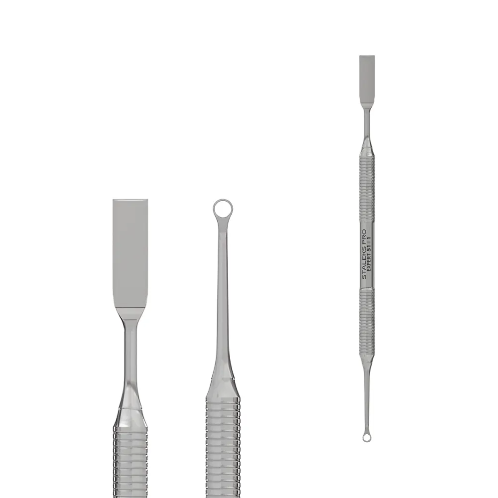 Лопатка EXPERT 51 TYPE 1 поєднує дві функціональні частини: Завдяки оптимальному заточуванню робоча поверхня ефективно справляється зі щільною шкіркою, не пошкоджуючи нігтьову пластину. Цей інструмент виконаний з цілісного металевого полотна, що виключає ризик розхитування деталей чи поломки кріплень. Належить до професійної серії EXPERT, тому підходить для всіх видів стерилізації і дезінфекції, необхідних у салонних умовах. Особливості продукту: Лопатка манікюрна EXPERT 51 TYPE 1 STALEKS PROЛопатка манікюрна EXPERT 51 TYPE 1 STALEKS PRO