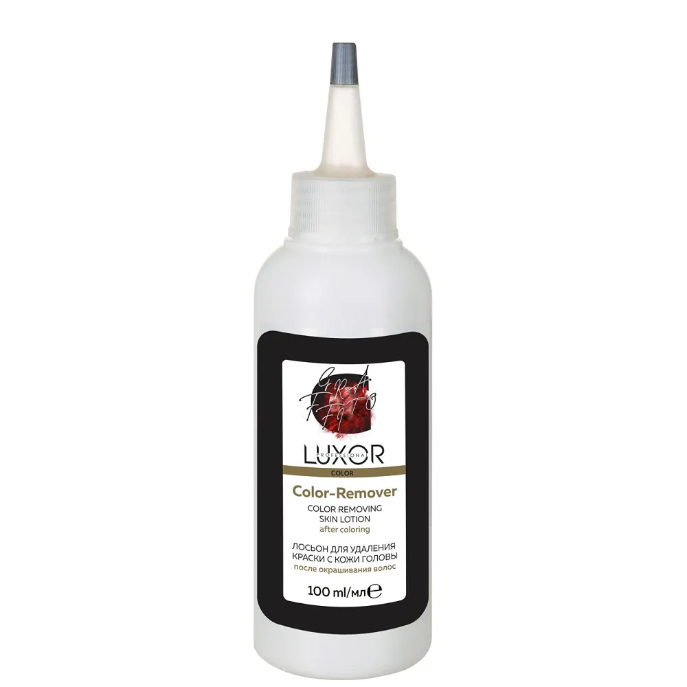 Лосьон Color-Remover містить спеціально розроблену формулу на основі очищувального комплексу та рицинової олії. Засіб ефективно і делікатно видаляє плями фарби зі шкіри, які можуть з`явитися під час процедури фарбування волосся. Завдяки активним компонентам ефективно знижує ризик виникнення процесів роздратування. Лосьон слід використовувати до застосування шампуню-нейтралізатора pH – 4,5! Застосування: Лосьйон для видалення фарби з шкіри голови після фарбування, 100 мл Color-Remover Color LUXOR Professional Нанести на ватний диск і акуратно видалити пляму.Лосьйон для видалення фарби з шкіри голови після фарбування Color-Remover Color LUXOR Professional