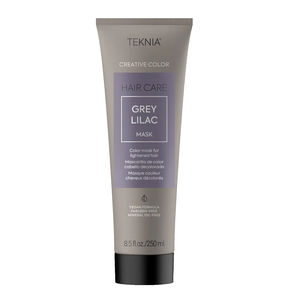 Маска GREY LILAC MASK інтенсивно відновлює структуру волосся, запобігає втраті пігменту і допомагає надовго зберегти яскравість та інтенсивність кольору. Формула засобу збагачена органічним екстрактом какао, що відрізняється своїми антиоксидантними властивостями. Це додатково захищає локони від негативного впливу зовнішніх факторів, UV-променів і стресу. Має свіжий аромат з ефірною олією лимону. Особливості продукту: Активні компоненти: Застосування: ретельно нанести на вимите та підсушене рушником волосся, залишити мінімально на 5-10 хвилин (в залежності від бажаного результату), змити. Рекомендуємо надягати рукавички.Маска для оновлення кольору освітленого волосся (фіолетово-сіра) GREY LILAC MASK Creative Color TEKNIA LAKME