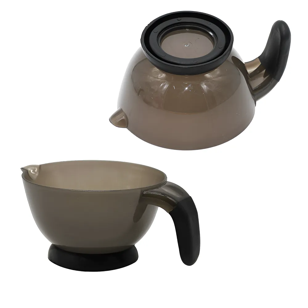 Миска просто комфортно сидить у руці, з нею приємно працювати. Виготовлена з міцного пластику високої якості, який не вступає в реакцію з фарбами чи окисниками. Прозорі стінки дозволяють контролювати кількість суміші, а мірні позначки у мілілітрах допомагають точно дозувати компоненти. Інструмент дуже зручний у роботі завдяки ергономічній гумовій ручці, що не ковзає та забезпечує надійне утримання під час фарбування. Гумове кільце на основі робить миску стійкою на будь-якій поверхні. Вона легко миється, не вбирає пігмент і довго зберігає привабливий зовнішній вигляд - ідеальний вибір як для салону, так і для домашнього використання.Миска для фарбування з гумовою ручкою 450 мл С-06 Y.R.E