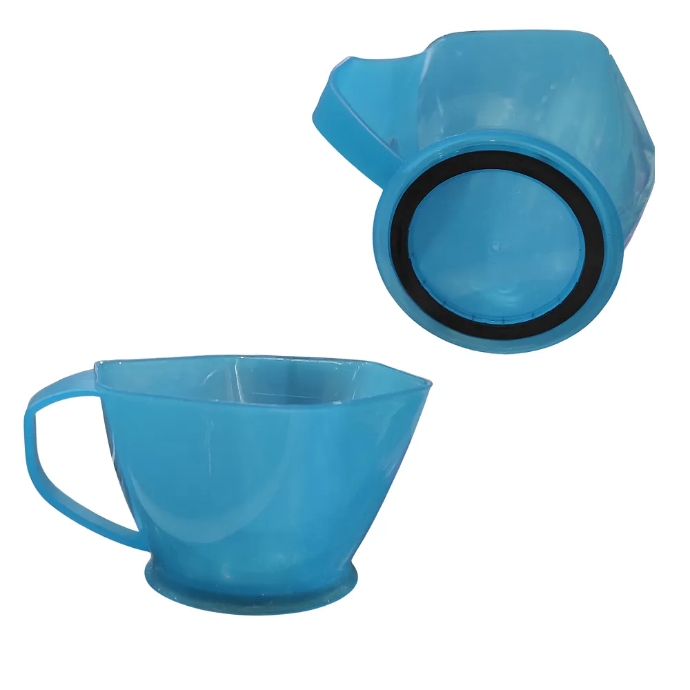 Мисочка для фарбування з ручкою - інструмент, який стане у нагоді кожному перукарю. Ця ємність потрібна для комфортного і безпечного змішування косметичних засобів, що фарбують або освітлюють. Для зручності у перенесенні вона оснащена ергономічною ручкою. Загострений носик виробу призначений для комфортного виливання рідини, що знаходиться в мисці. Нижня частина інструменту оснащена гумовим кільцем, завдяки яким миска не ковзатиме по гладкому перукарському столі. Для додаткової зручності в роботі виріб має градуювання з кроком 50 мл. Матеріал миски стійкий до агресивної дії фарбуючих та освітлювальних речовин, оскільки він не вступає з ними в хімічну реакціюМиска для фарбування з ручкою, ромбовидна С-05 Y.R.E