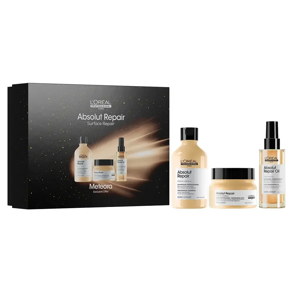 Подаруйте своєму волоссю максимальне відновлення з набором L`Oreal Professionnel Serie Expert Meteora Absolut Repair. Цей преміальний трио-набір створено для тих, хто бажає повернути волоссю силу, шовковистість і блиск після хімічних, термічних або механічних пошкоджень. З цим набором ваше волосся виглядатиме як після салонної процедури: сильне, блискуче, підготовлене до нових експериментів і стійке до негативних впливів. У наборі: Набір для відновлення (шампунь 300 мл+маска 250 мл+олійка 90мл), Meteora Absolut Repair L`Oreal Professionnel Особливості шампуня Absolut Repair: Набір для відновлення (шампунь 300 мл+маска 250 мл+олійка 90мл), Meteora Absolut Repair L`Oreal Professionnel Особливості маски Absolut Repair: Набір для відновлення (шампунь 300 мл+маска 250 мл+олійка 90мл), Meteora Absolut Repair L`Oreal Professionnel Особливості олійки Absolut Repair: Набір для відновлення (шампунь 300 мл+маска 250 мл+олійка 90мл), Meteora Absolut Repair L`Oreal Professionnel Застосування: Набір для відновлення (шампунь 300 мл+маска 250 мл+олійка 90мл), Meteora Absolut Repair L`Oreal ProfessionnelНабір для відновлення (шампунь 300 мл+маска 250 мл+олійка 90мл), Meteora Absolut Repair L`Oreal Professionnel