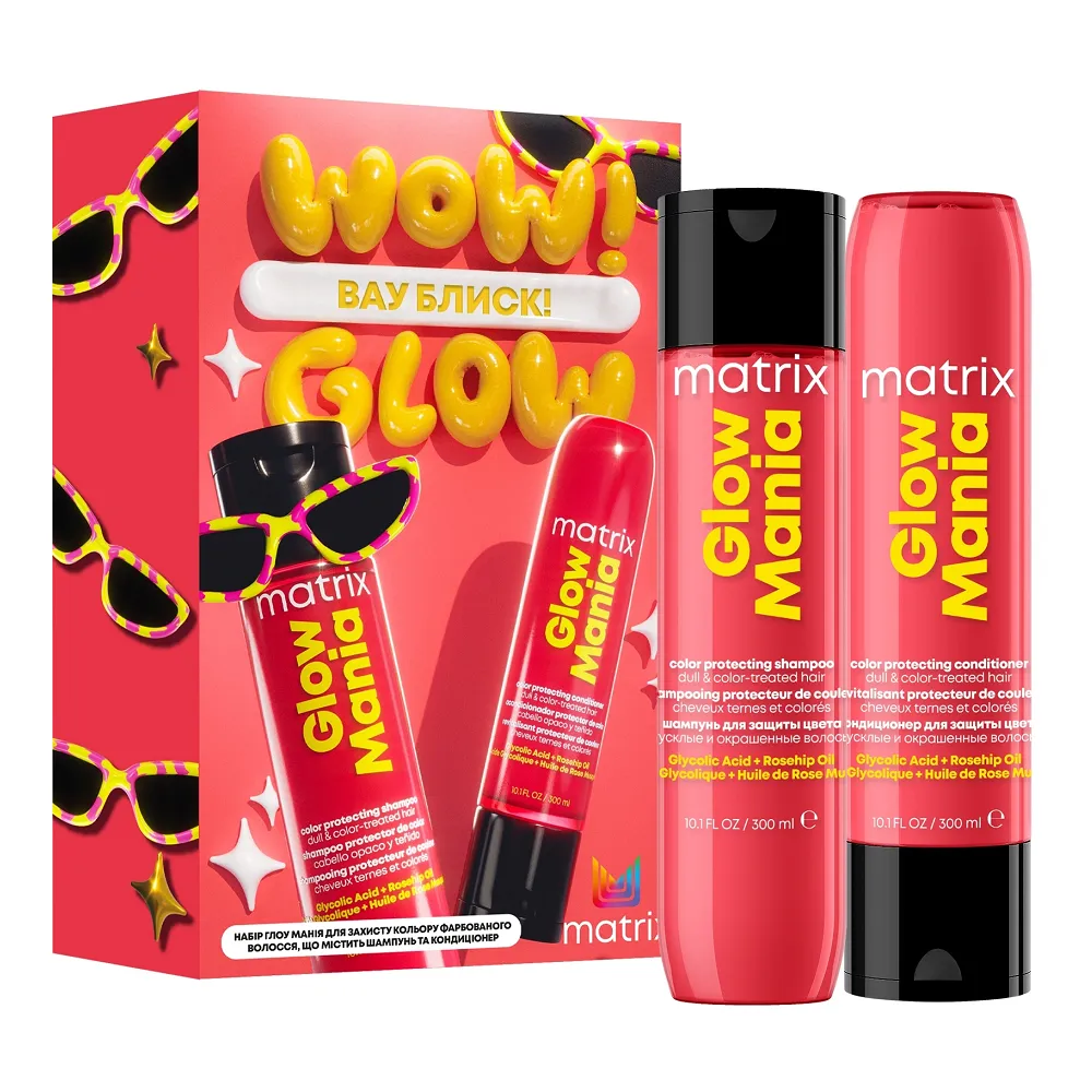 Matrix Glow Mania - це ваш щит для кольору та квиток до сяючого, доглянутого волосся. Професійний дует шампуню та кондиціонера створений для тих, хто хоче продовжити життя свого відтінку, зберігає його інтенсивність та блиск після фарбування. Цей набір м’яко очищає, живить і підтримує структуру волосся, не вимиває пігмент. Підійде для будь-якого типу фарбованих локонів і щоденного використання, забезпечує ефект салонного догляду вдома. Набір складається з: Набір для захисту кольору і блиску фарбованого волосся (шампунь 300 мл + кондиціонер 300 мл), Glow Mania Total Results MATRIX Особливості шампуня Insta Glow Mania: Набір для захисту кольору і блиску фарбованого волосся (шампунь 300 мл + кондиціонер 300 мл), Glow Mania Total Results MATRIX Особливості кондиціонера Glow Mania: Набір для захисту кольору і блиску фарбованого волосся (шампунь 300 мл + кондиціонер 300 мл), Glow Mania Total Results MATRIX Застосування: Набір для захисту кольору і блиску фарбованого волосся (шампунь 300 мл + кондиціонер 300 мл), Glow Mania Total Results MATRIXНабір для захисту кольору і блиску фарбованого волосся (шампунь 300 мл + кондиціонер 300 мл), Glow Mania Total Results MATRIX